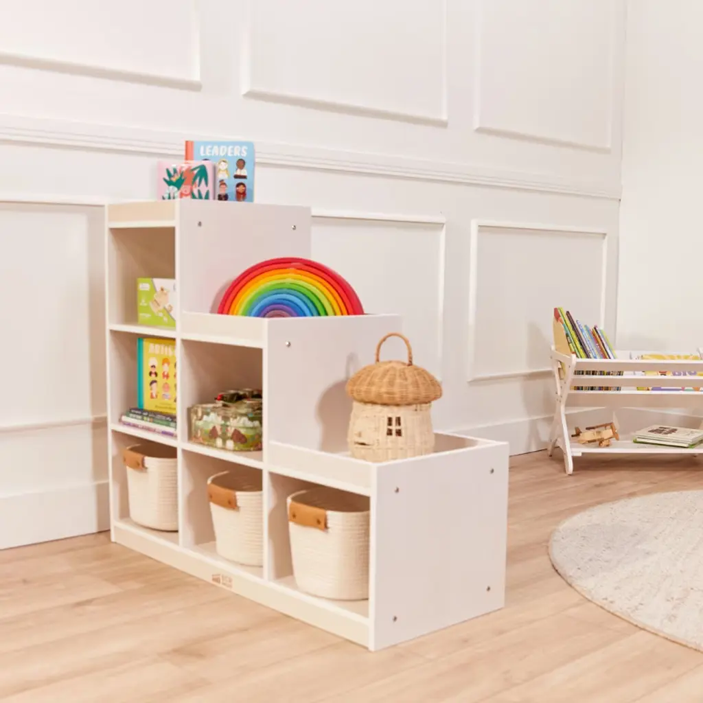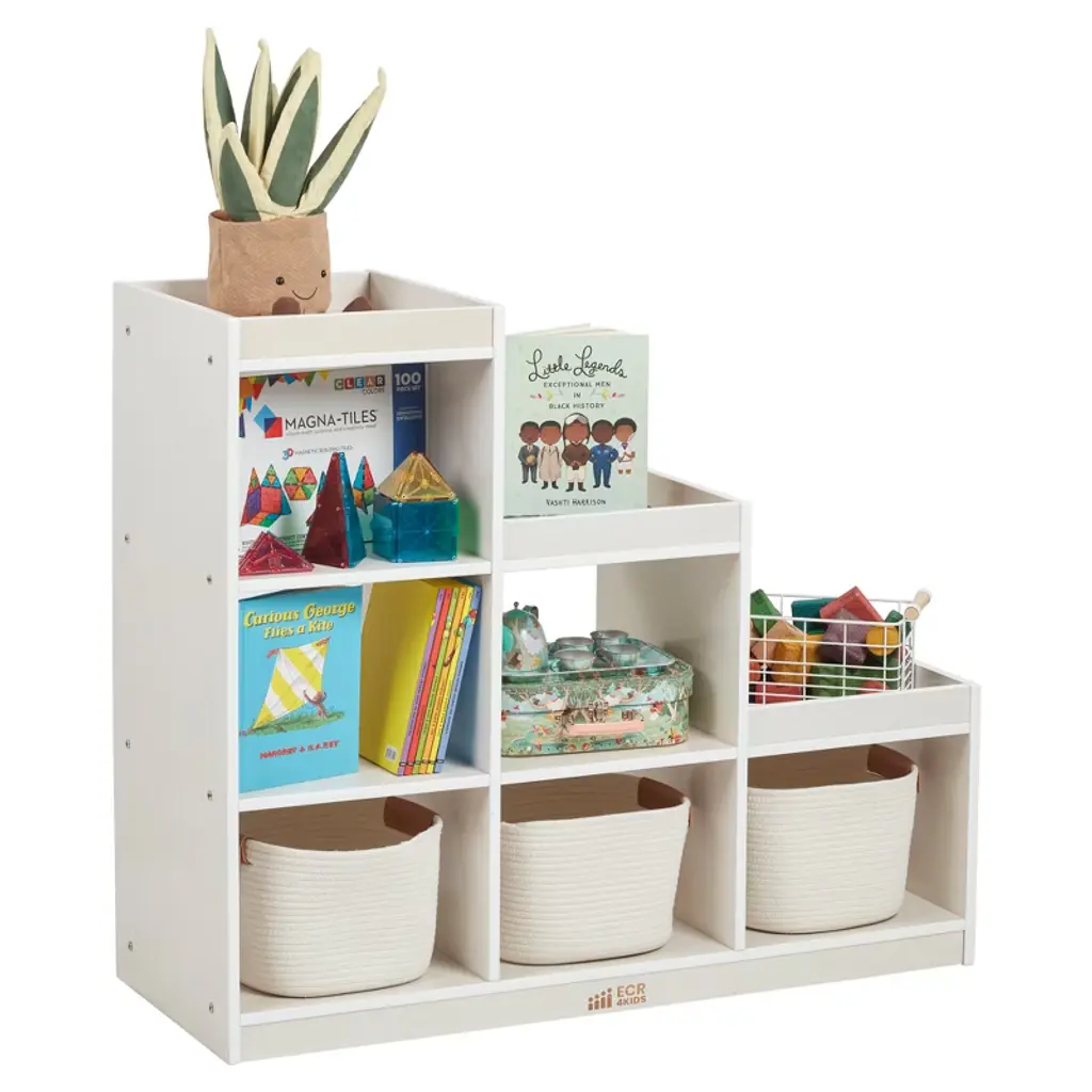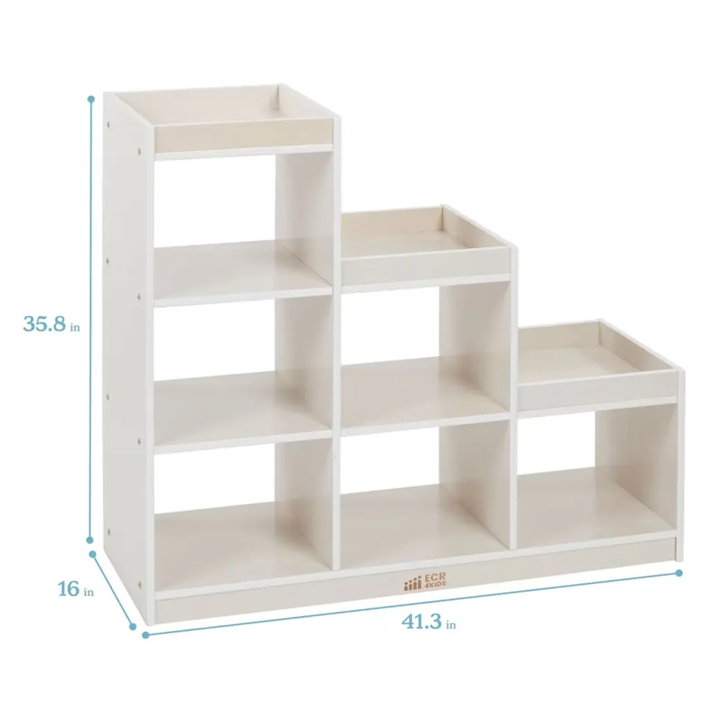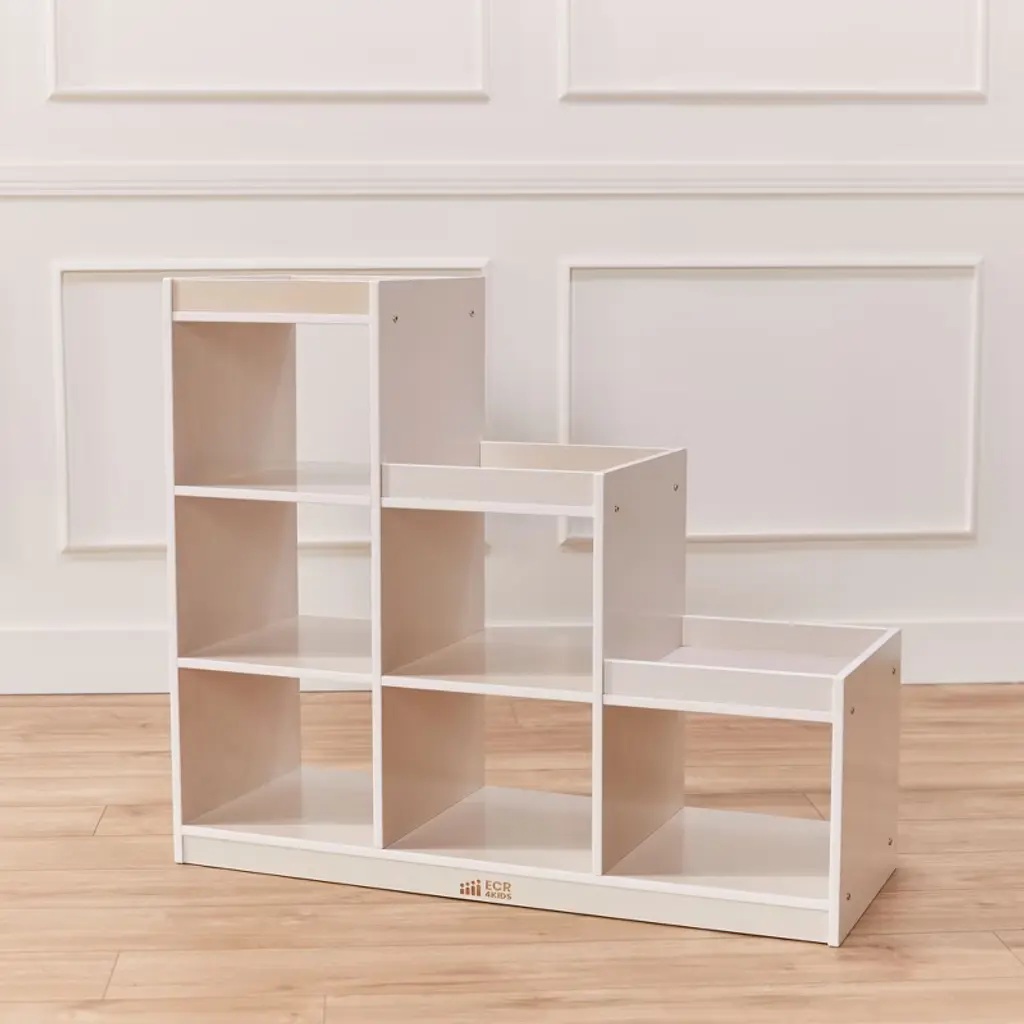 Transform your classroom or playroom into an engaging and organized space with ECR4Kids 3-2-1 Cube Storage Cabinet, effortlessly combining functionality and modern design. The multipurpose 6 cubby storage organizer is a perfect solution for organizing and displaying stories, games, school supplies, arts & crafts material, STEAM learning, and more. This versatile 6-compartment cube shelf has been designed for multiple applications including against a wall, as a room partition with double-sided access, or paired with another unit for a creative stair step bookcase. The low-profile open-face shelves empower children to independently choose their favorite activities, build organizational skills, and easily clean up when playtime is over. Each cube shelf features a 2" perimeter edge on top to prevent items from rolling off. The book shelf is constructed from sustainably harvested birch plywood with a durable finish sealing the wood surface and resisting scratching. A UV inhibitor helps furniture resist ultraviolet light and yellowing. Natural birch plywood is extremely durable and will hold up to everyday use in a daycare, and preschool, and is great for home décor. Pair the 6 cube organizer with additional items from the ECR4Kids Birch furniture collection to complete your space, sold separately.