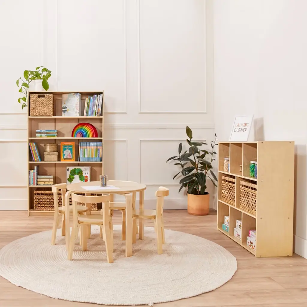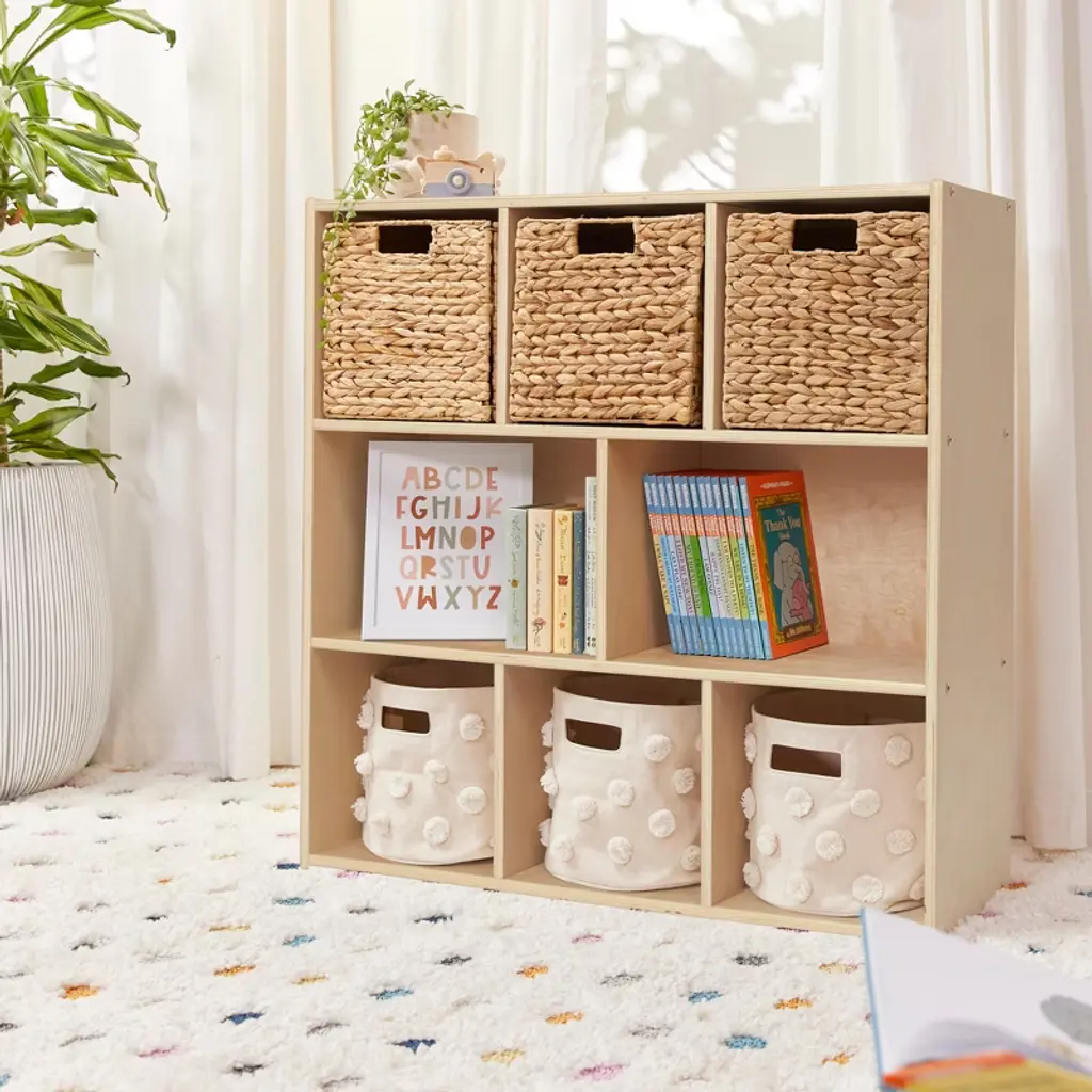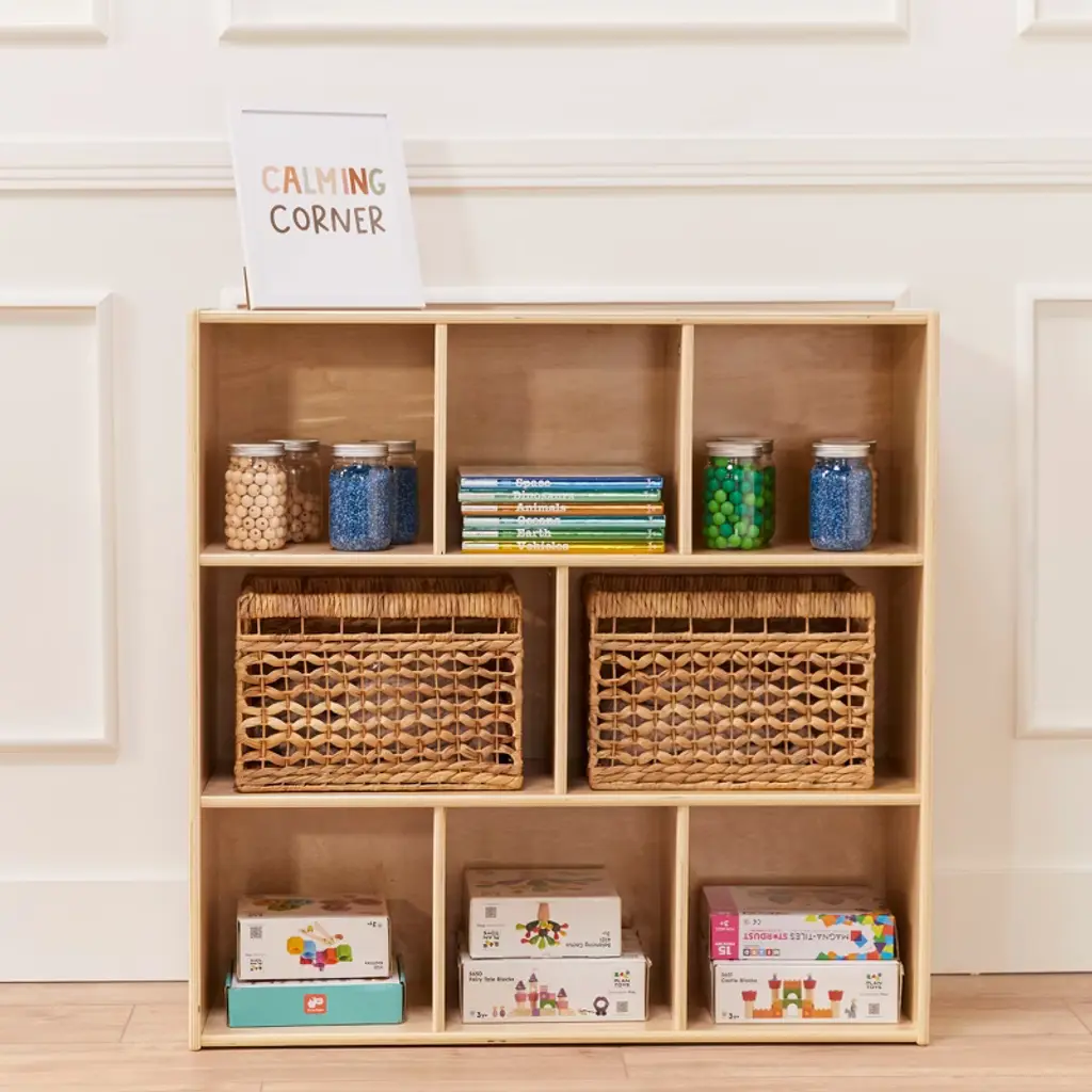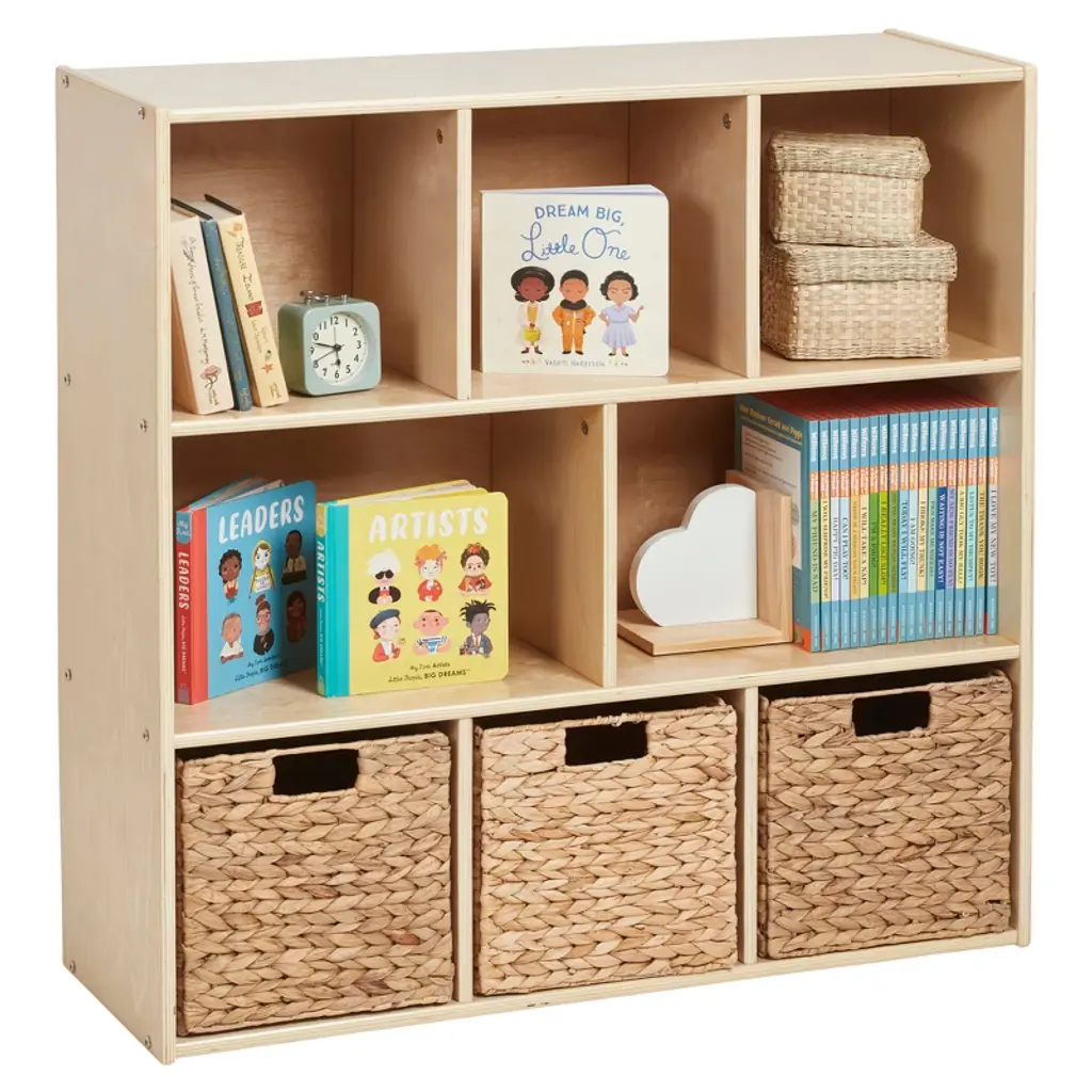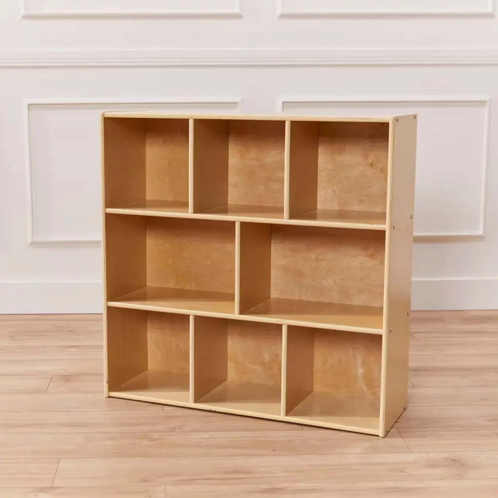Keep your daycare, preschool, and home organized with ECR4Kids Streamline 8-Section Storage Cabinet. The multipurpose storage solution provides ample space to display and organize books, games, and arts and crafts supplies. Make playtime more manageable with displays of developmentally appropriate toys; rearrange play spaces with too many options. Use this toy rotation storage to bring excitement back as playthings are refreshed. Designed to grow with little ones, this organizer helps parents, teachers, and educators keep small items off the floor and within reach. The low-profile open-face shelves encourage children to select their favorite activity independently and introduce organizational skills and clean up when playtime is over. Constructed from sustainably harvested birch plywood with a durable finish sealing the wood surface and resisting scratching. A UV inhibitor helps furniture resist ultraviolet light and yellowing. Natural birch plywood is durable and designed for everyday use in a commercial or institutional environment, and great for the home. The natural grain complements any space. Combine the Montessori storage with ECR4Kids Birch Collection furniture pieces to complete the space; sold separately.