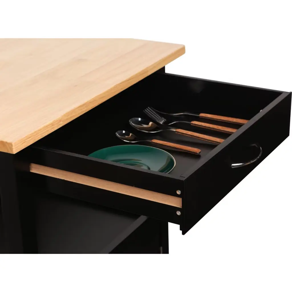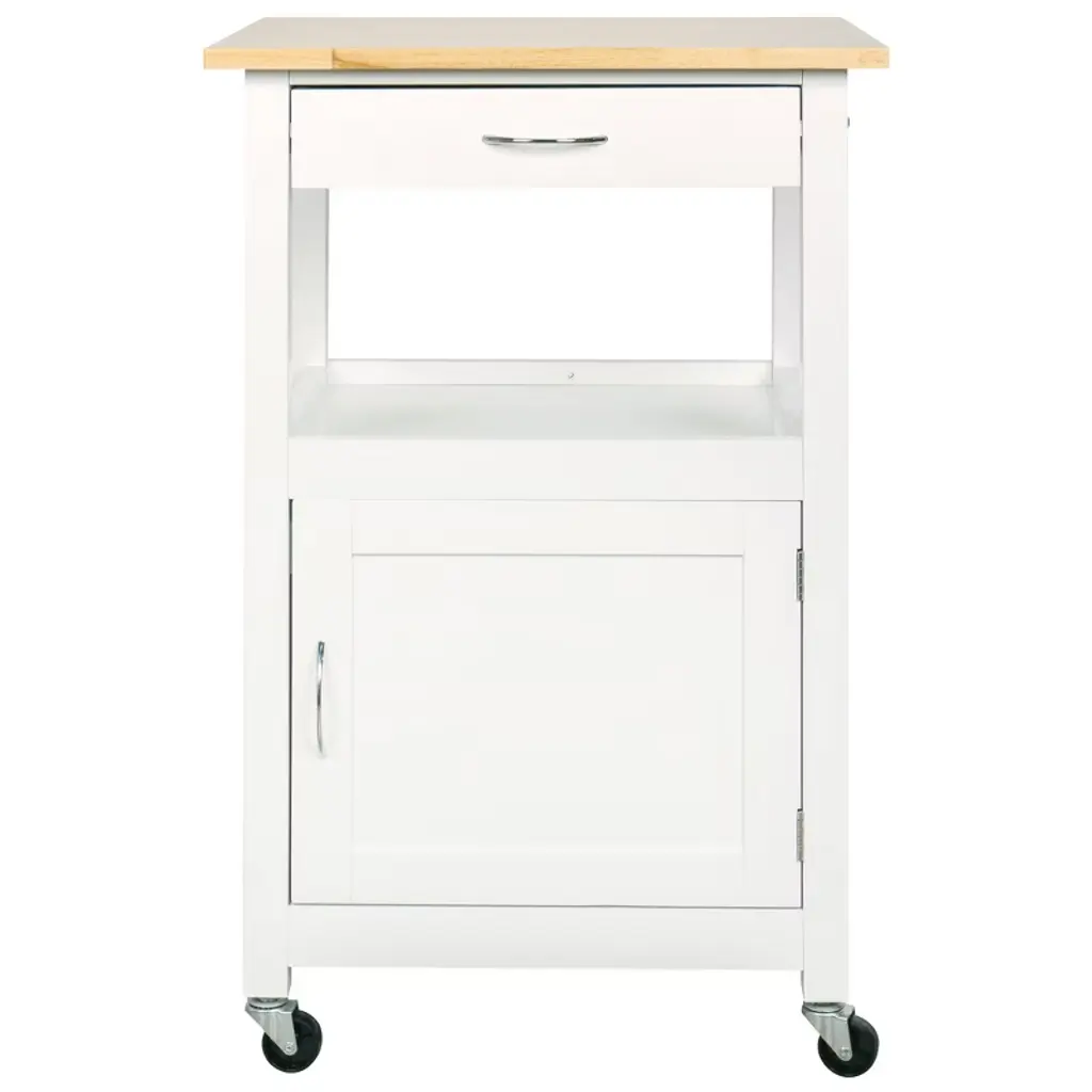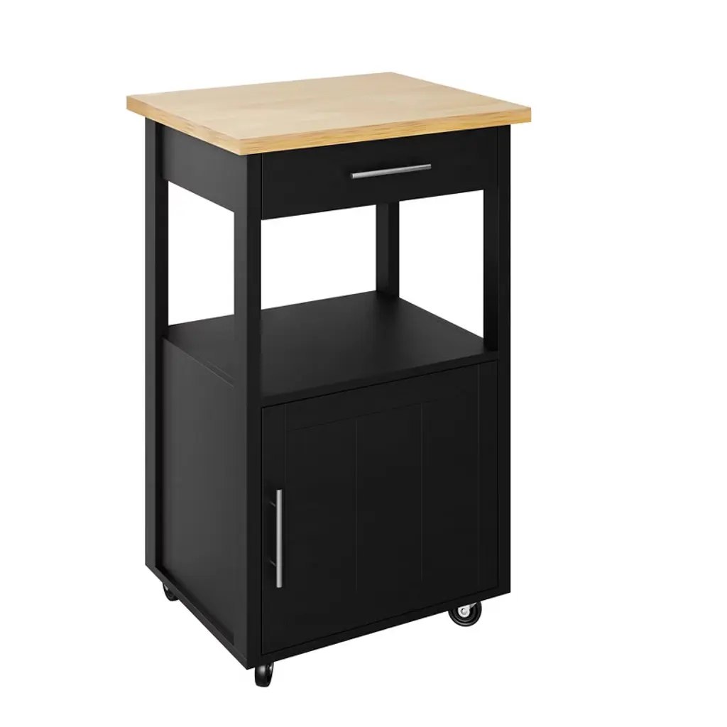 Ehemco 1-door Kitchen Island Cart On Wheels With Drawer, Storage Cabinet, Shelf And Natural Solid Hardwood Top, Gray