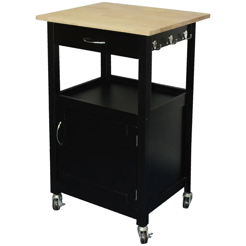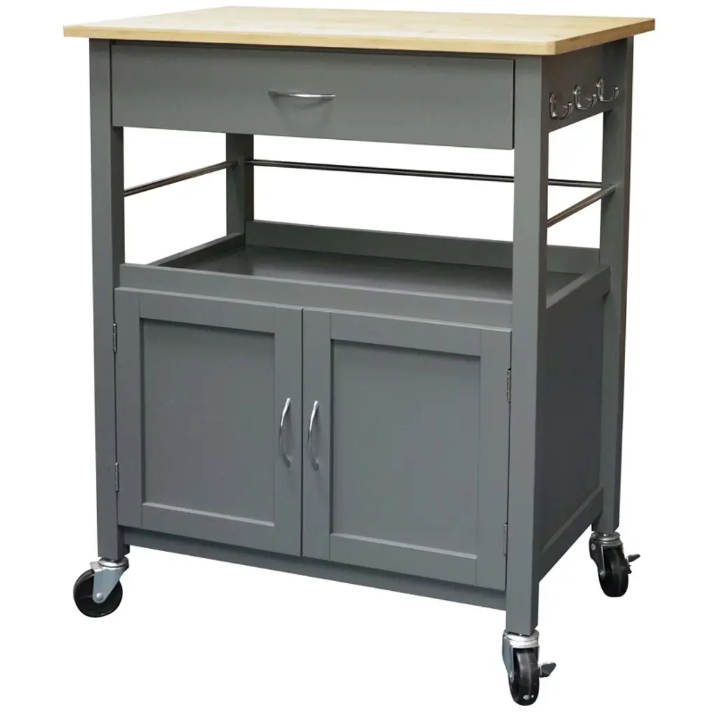 Add more prep and storage space with the eHemco Kitchen Island Cart. The bamboo top offers a butcher block for cutting and other tasks while the base coordinates with your decor. A slide out drawer, cabinet and an open shelf offer storage for ingredients, utensils and more. Metal bars and 3 hooks provide a convenient spot to hang towels and other items. This natural cart is also easy to move from place to place with locking caster wheels.