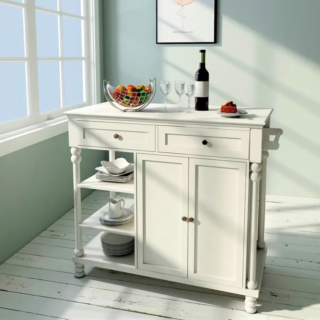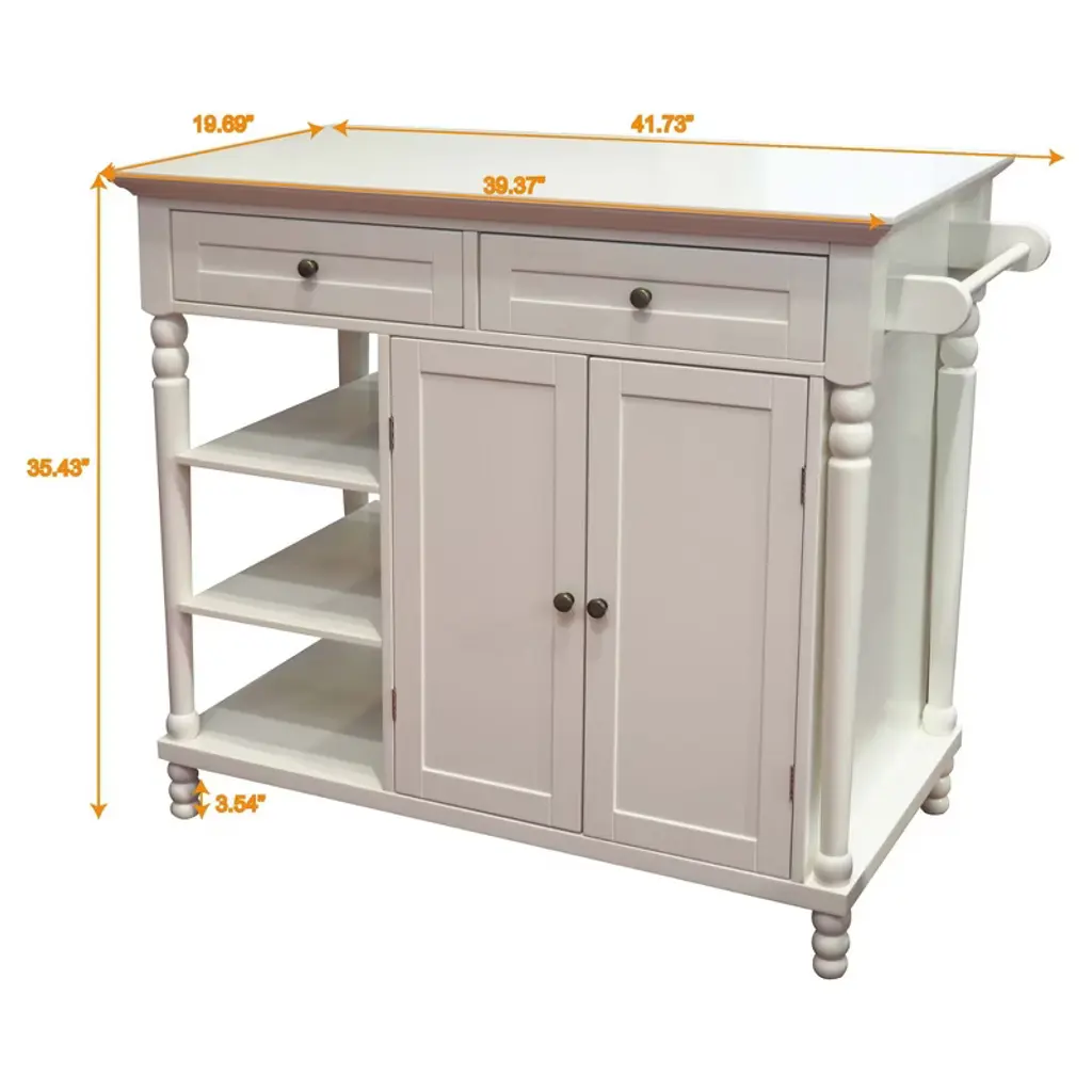 Elevate your kitchen's style with the eHemco Wood Euro Kitchen Island. Crafted from durable MDF wood, this island features a classic design with bottom turned legs. It offers ample storage space, including dual drawers, a 2-door cabinet with an adjustable shelf, and 3 open shelves for your kitchenware. Measuring 41.73 inches wide, 19.69 inches deep, and 35.43 inches tall, this versatile island is the perfect addition to your cooking space.