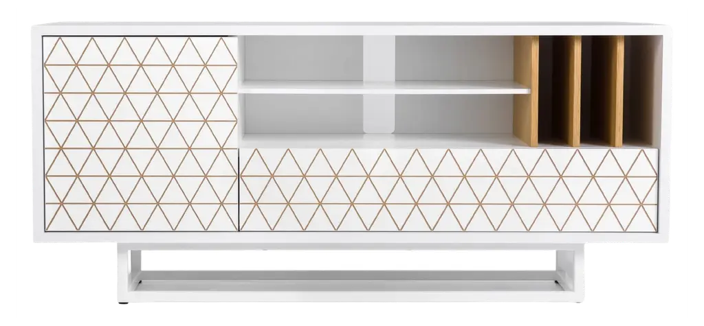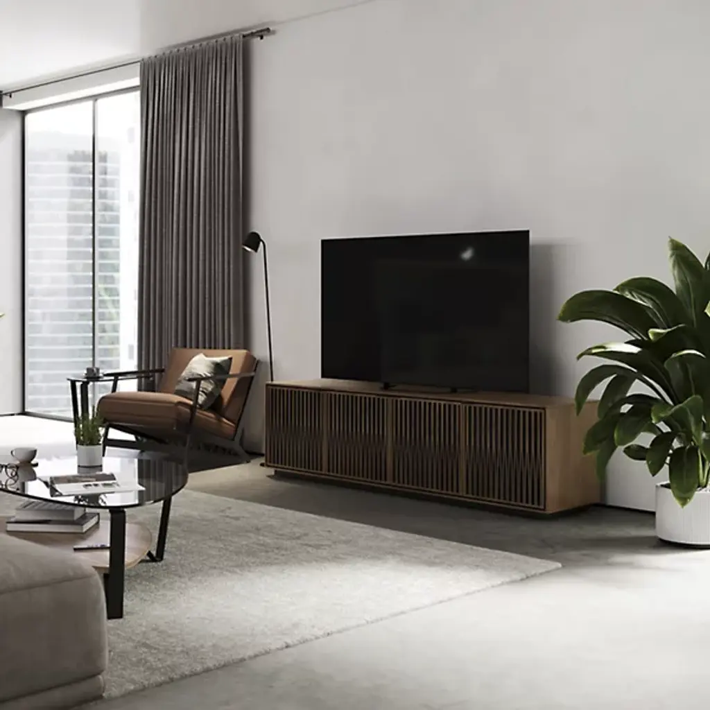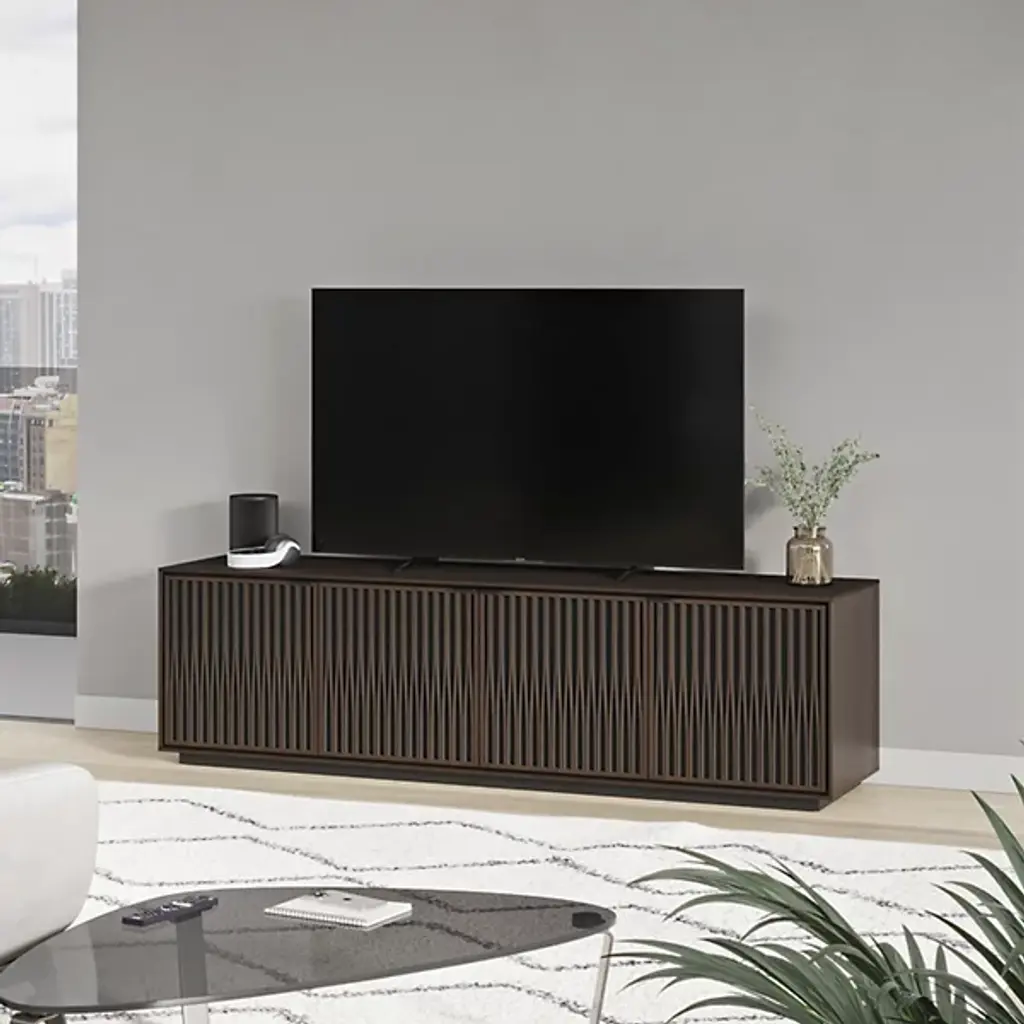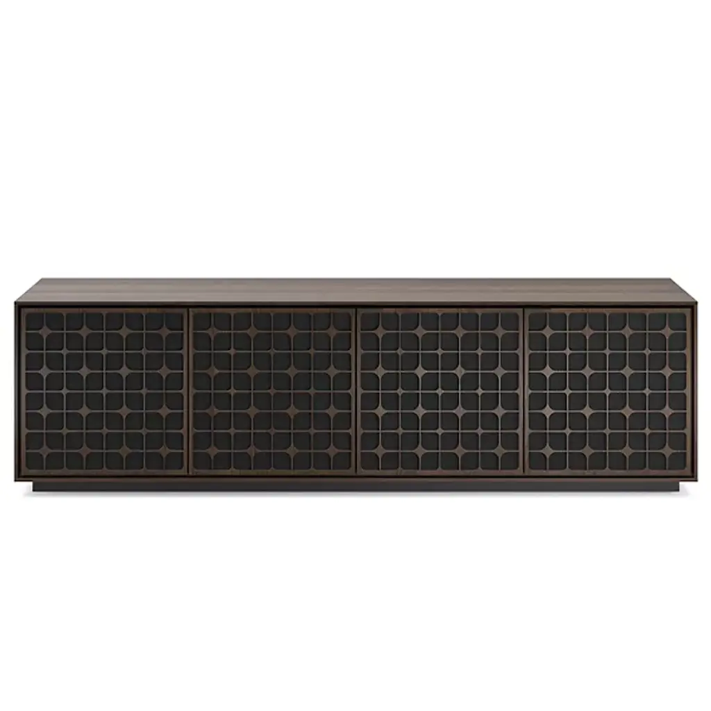 Transform your living space with the Elements Cabinet with Rolling Plinth Base by BDI, a charming blend of warmth and style. Crafted with plain-sliced veneer, its stunning doors feature intricate cut-out patterns, beautifully framed to enhance any room. The rolling plinth base adds a touch of mobility, making it perfect as a media console or versatile storage solution. With fabric-lined panels for acoustically transparent performance and thoughtful ventilation, this cabinet balances function and elegance, inviting coziness into your home while keeping your electronics cool and accessible.