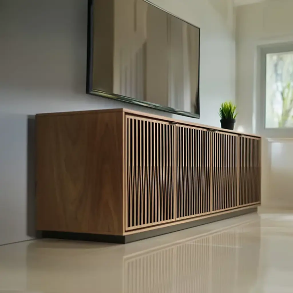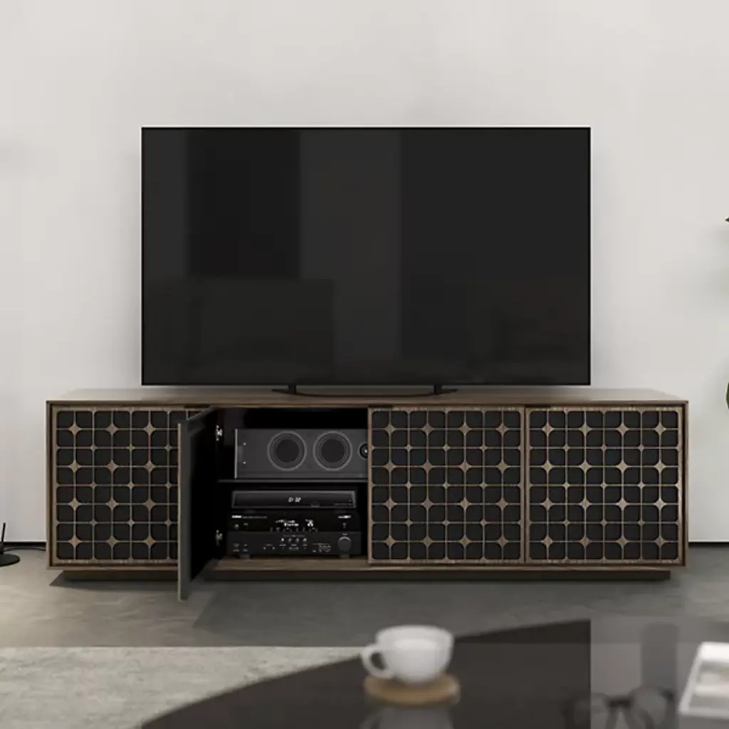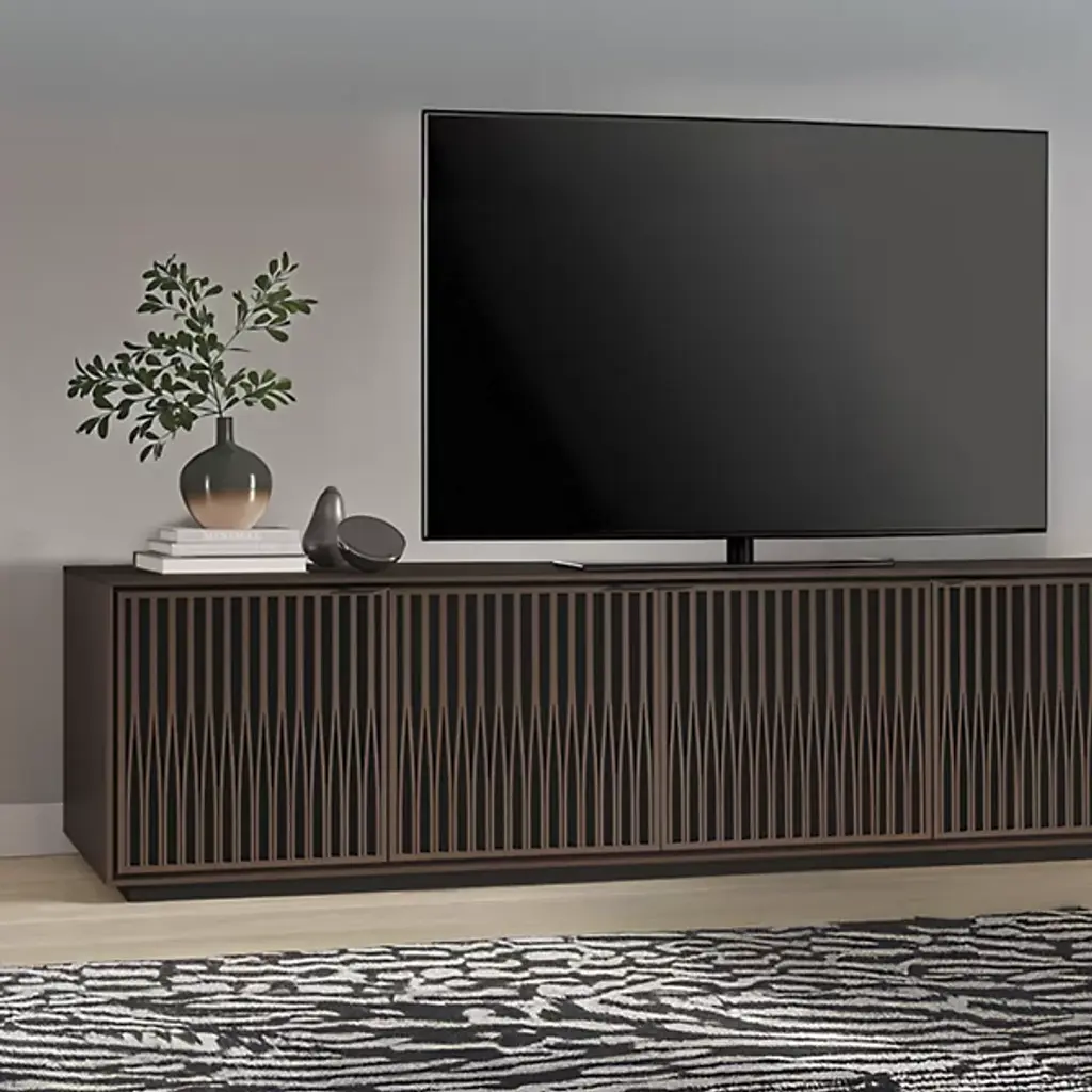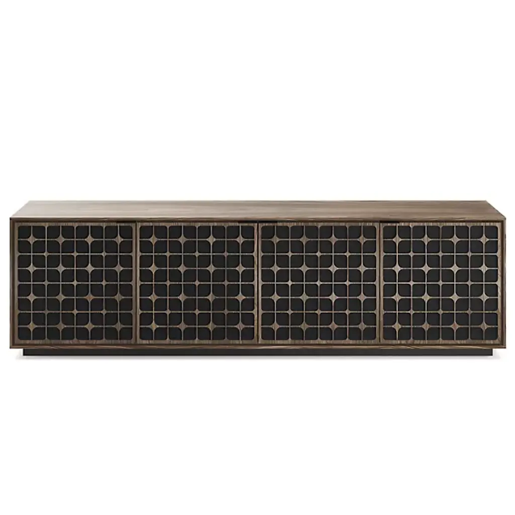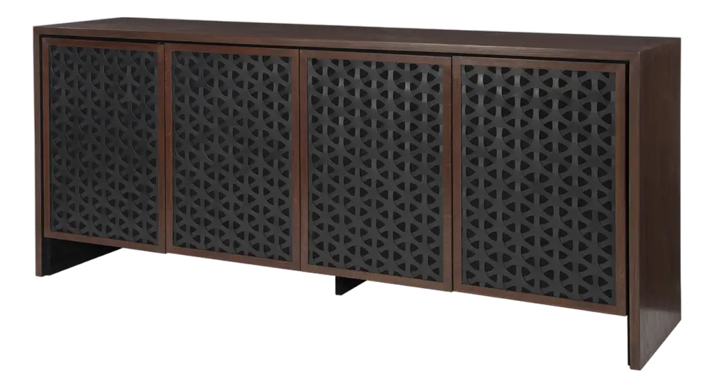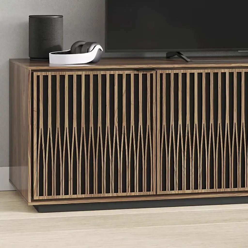 Transform your living space with the Elements Cabinet with Rolling Plinth Base by BDI, a charming blend of warmth and style. Crafted with plain-sliced veneer, its stunning doors feature intricate cut-out patterns, beautifully framed to enhance any room. The rolling plinth base adds a touch of mobility, making it perfect as a media console or versatile storage solution. With fabric-lined panels for acoustically transparent performance and thoughtful ventilation, this cabinet balances function and elegance, inviting coziness into your home while keeping your electronics cool and accessible.