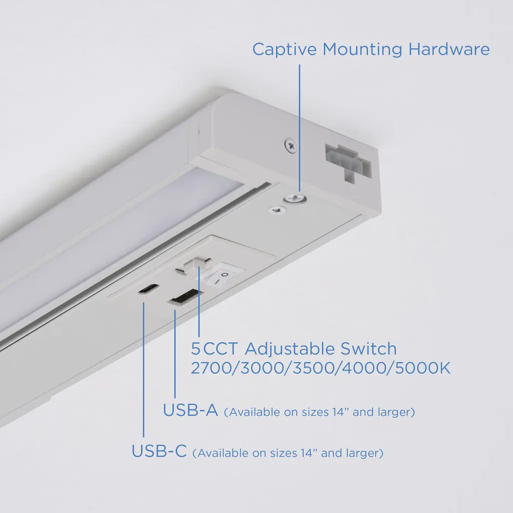 Illuminate your space with the sleek and energy-efficient Elena LED Undercabinet Light by AFX. Constructed with a combination of steel and acrylic, this light features a frosted acrylic diffuser that provides a soft and uniform illumination. With its 5-in-1 CCT (Correlated Color Temperature) and dimmable functionality using a TRIAC/ELV dimmer, you can easily adjust the lighting to suit your preference. Additionally, this undercabinet light is Energy Star certified and Title 24 compliant, ensuring energy efficiency and compliance with regulations.