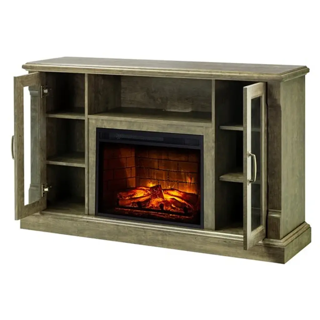 Elena 58" Tv Stand With Infrared Electric Fireplace In Rustic Gray Finish
