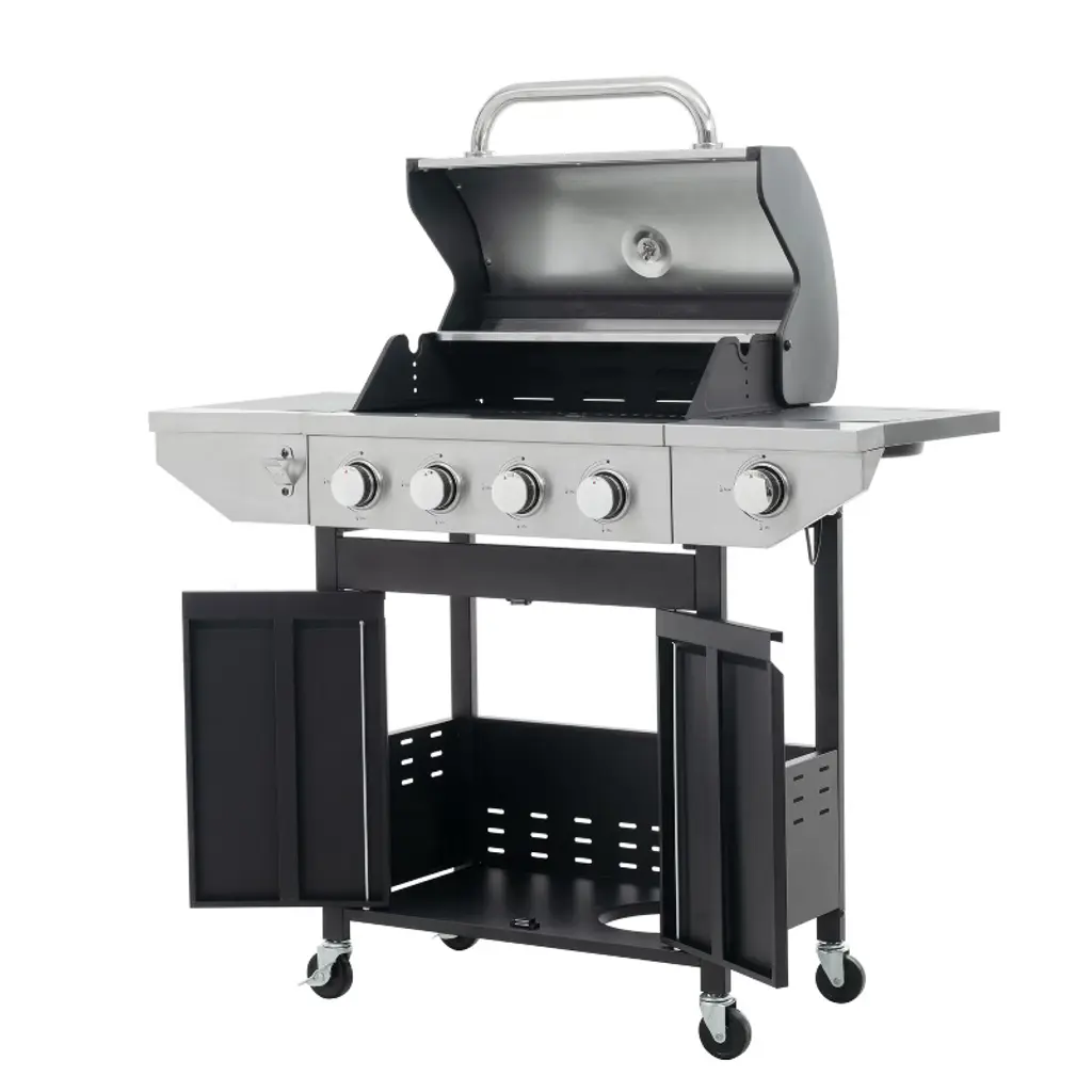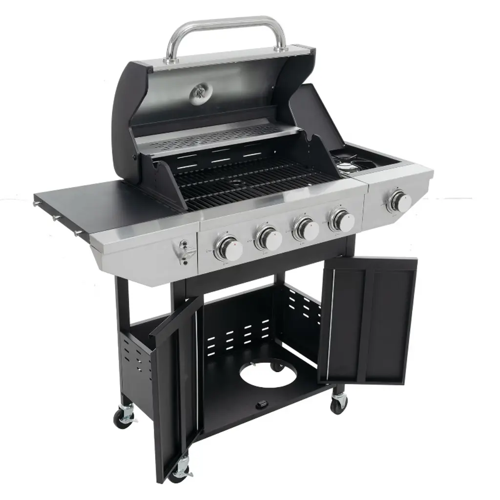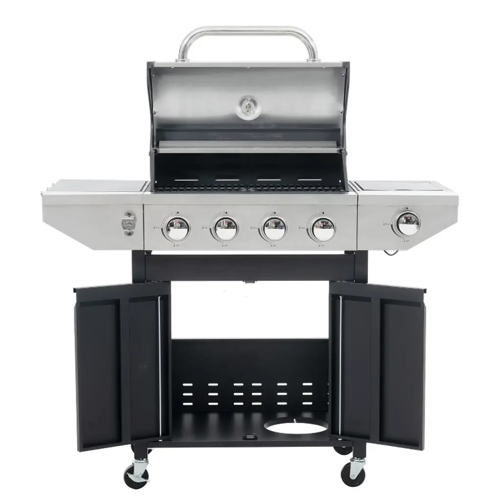 Eljget 4-burner Propane Gas Grill With Side Burner, 46700 Btu Outdoor Cooking Stainless Steel Bbq Grills Cabinet, Black