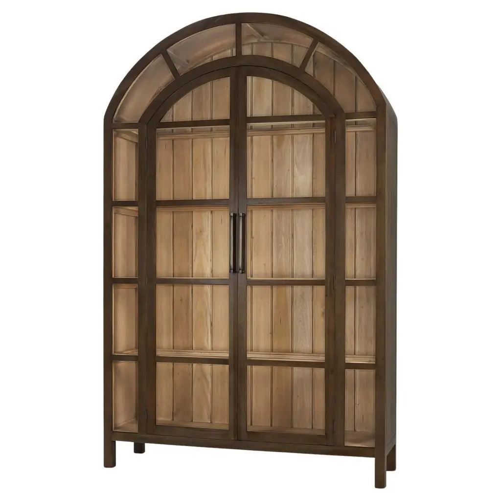 Unparalleled luxury and sophistication exude from the Elm 4-Door Display Cabinet by Vical Home. This Gubin display cabinet boasts a rich brown hue and showcases a colonial-style design, crafted from exquisite elm wood. Elevate your space with this exclusive piece, perfect for displaying your cherished belongings.