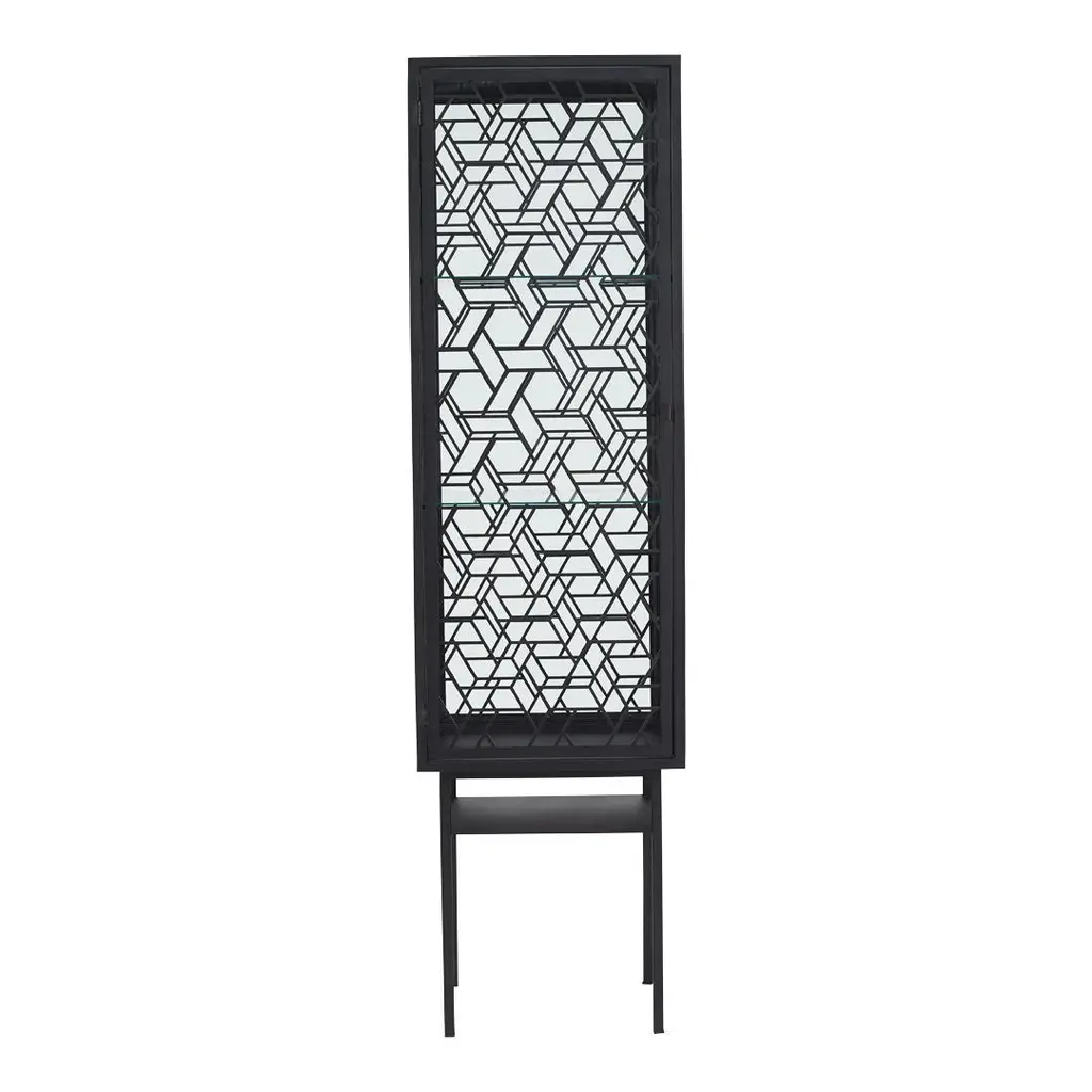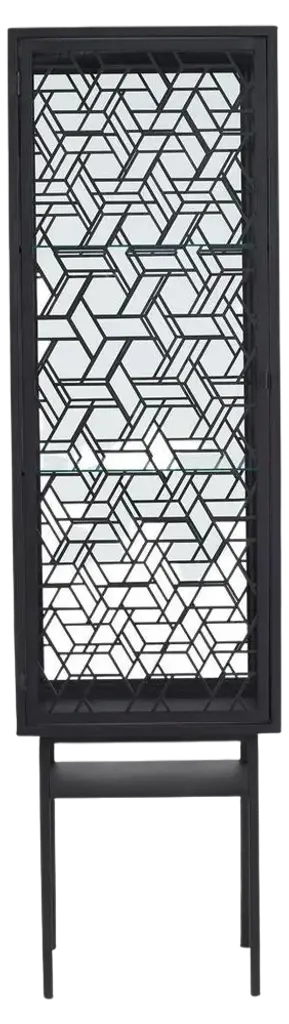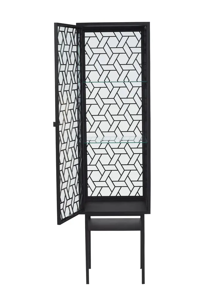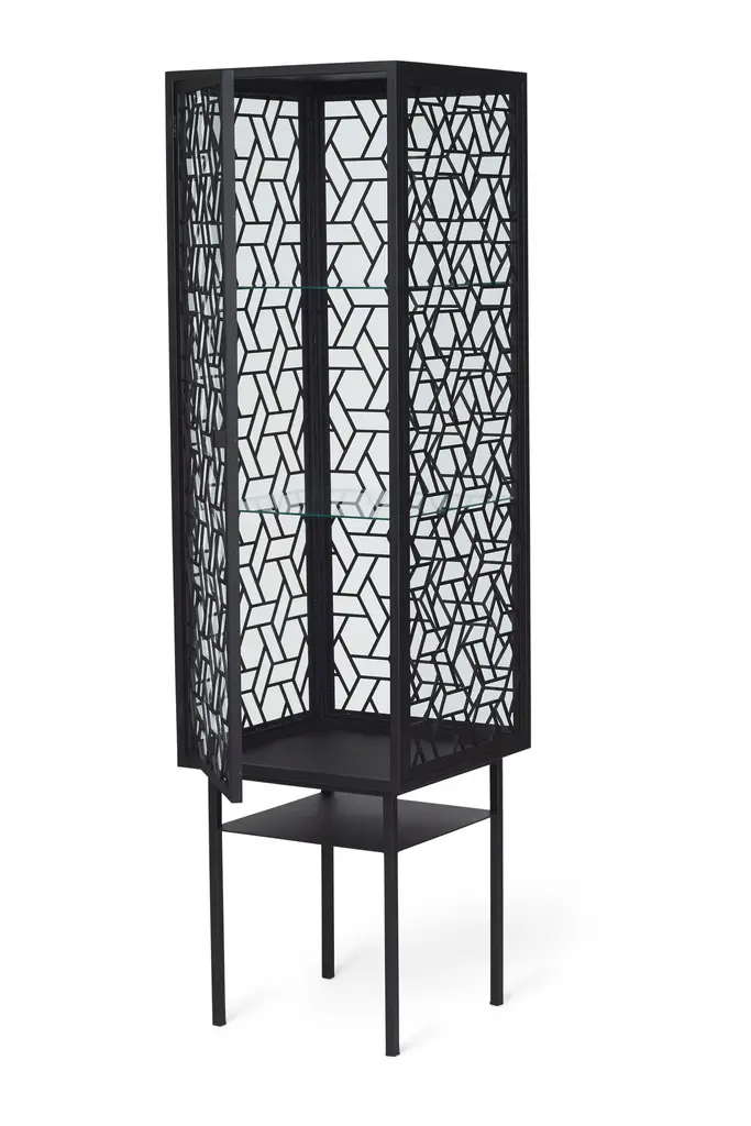 An elegant glass display cabinet with a timeless design and a beautiful combination of metal and glass. Enigma is perfect for displaying and highlighting your most cherished possessions behind a glass shield. While an elegant feature in any living room, it would also lend an extravagant touch to the bedroom. The talented Danish designer, Rikke Frost takes a fresh look at the glass display cabinet, transforming it from a utility item into an artistic experience. The overall design concept of Enigma is to present its contents in a fragmented way, investing the classic glass display cabinet with an enigmatic, artistic character and innovative relevance. The metal grid was inspired by traditional glazing techniques, in which lead soldering is used. Its playful use of shadows and transparency tickles our curiosity: you can only just make out the outlines of the items displayed behind the glass.