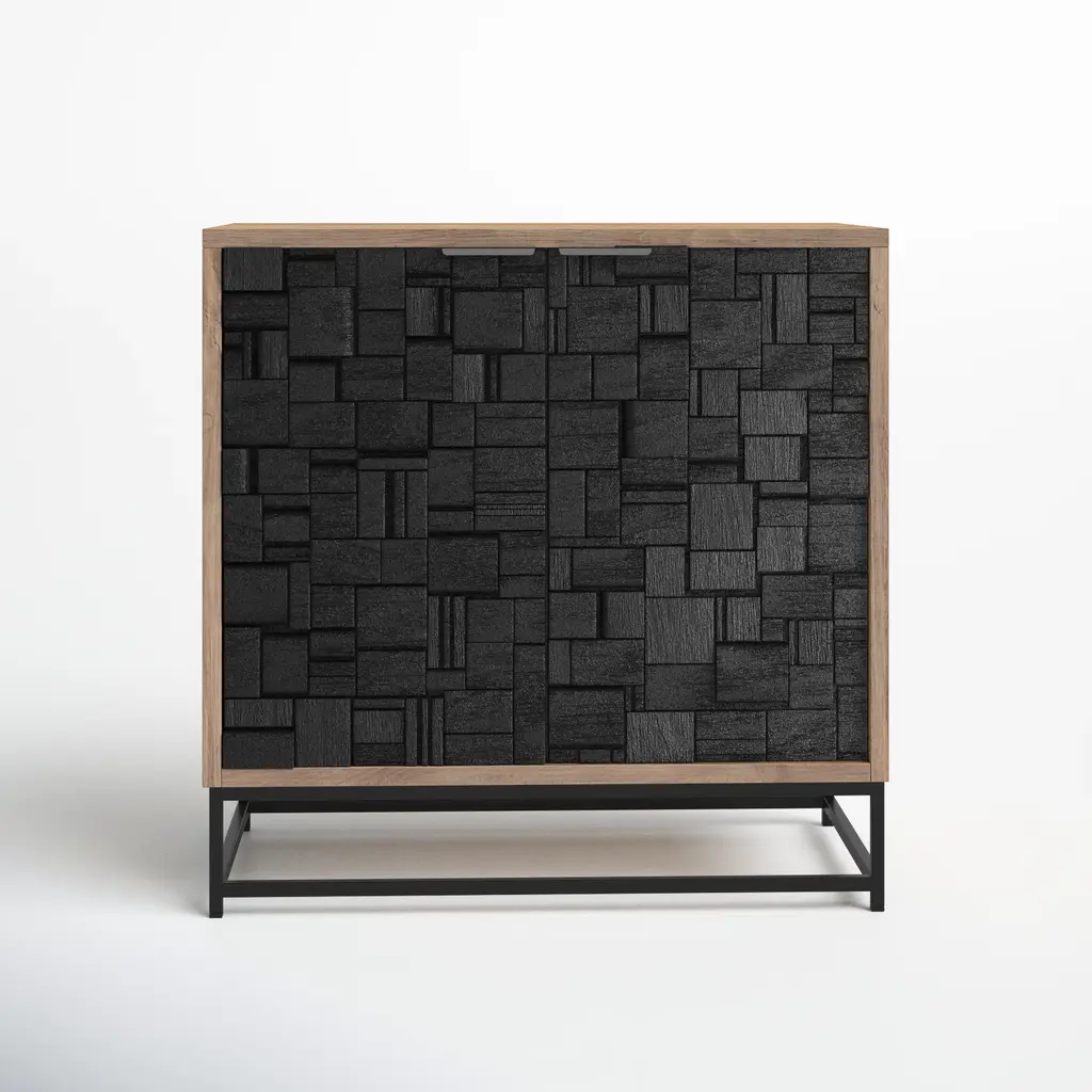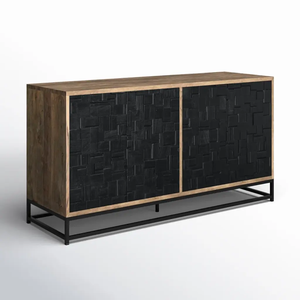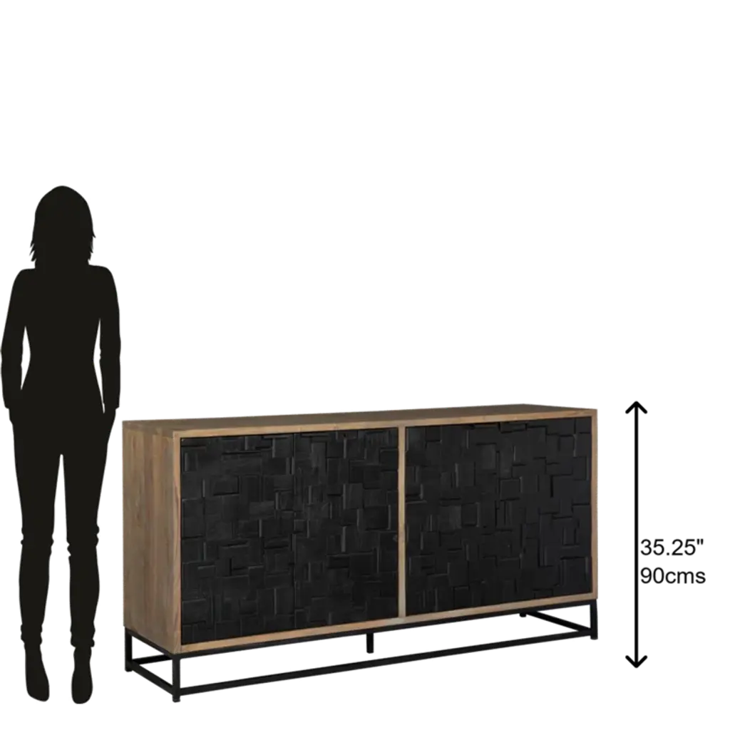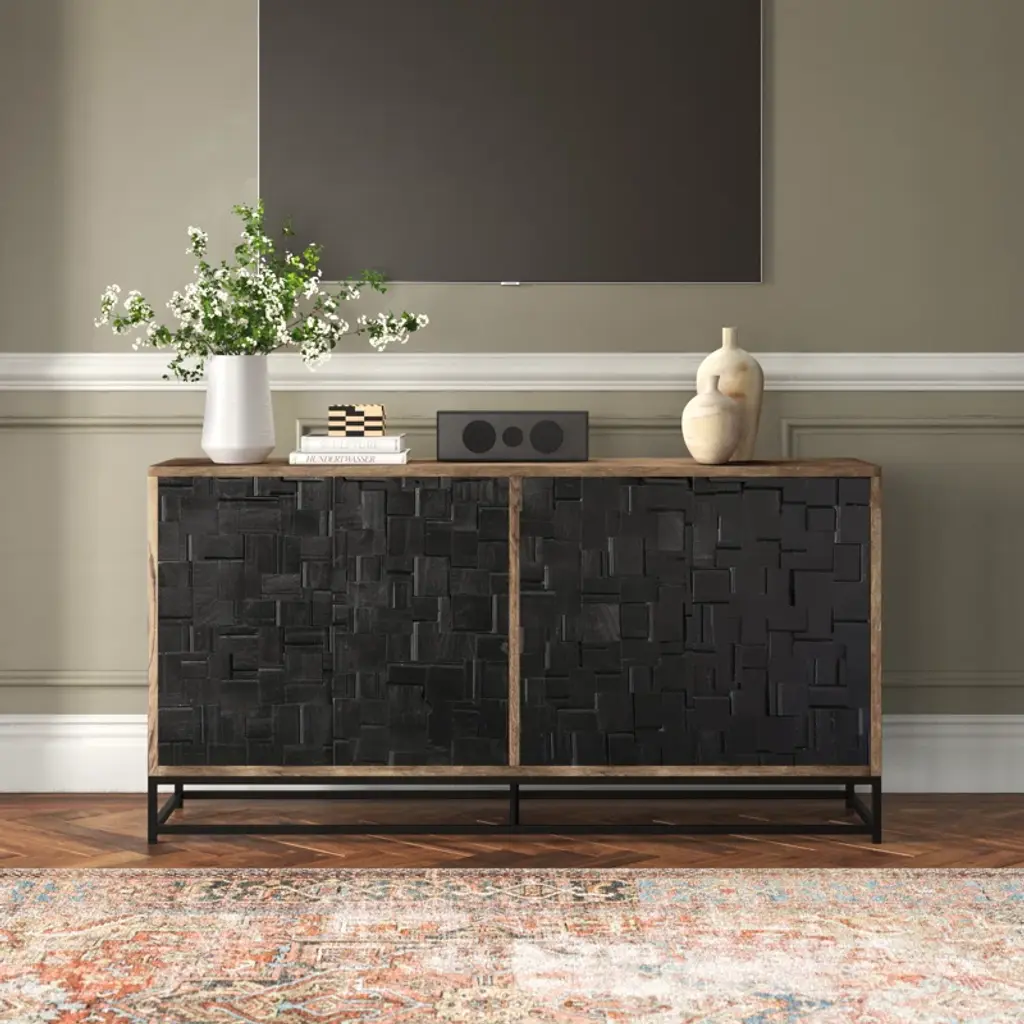 Make a statement with this striking media console. Woven cane accents give this piece an earthy feel, while sleek metal legs balance the look. Four shelved cabinets offer hidden storage for tech, board games, and beyond. Plus, the built-in cable management system keeps your setup neat and tangle-free. Arrives fully assembled.