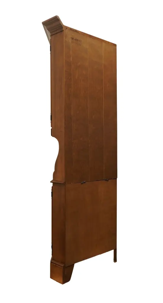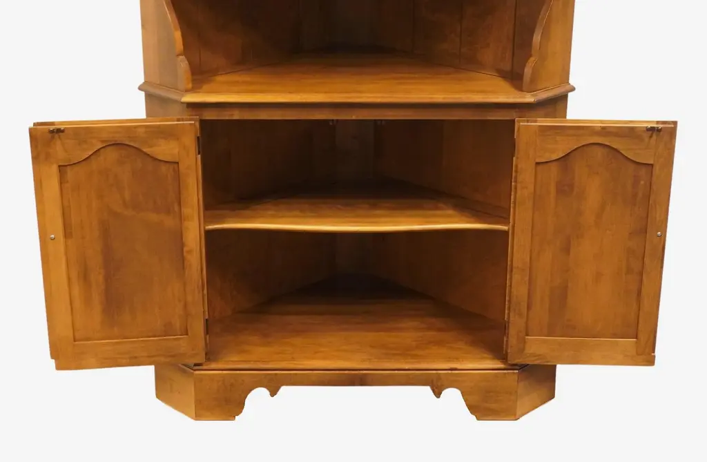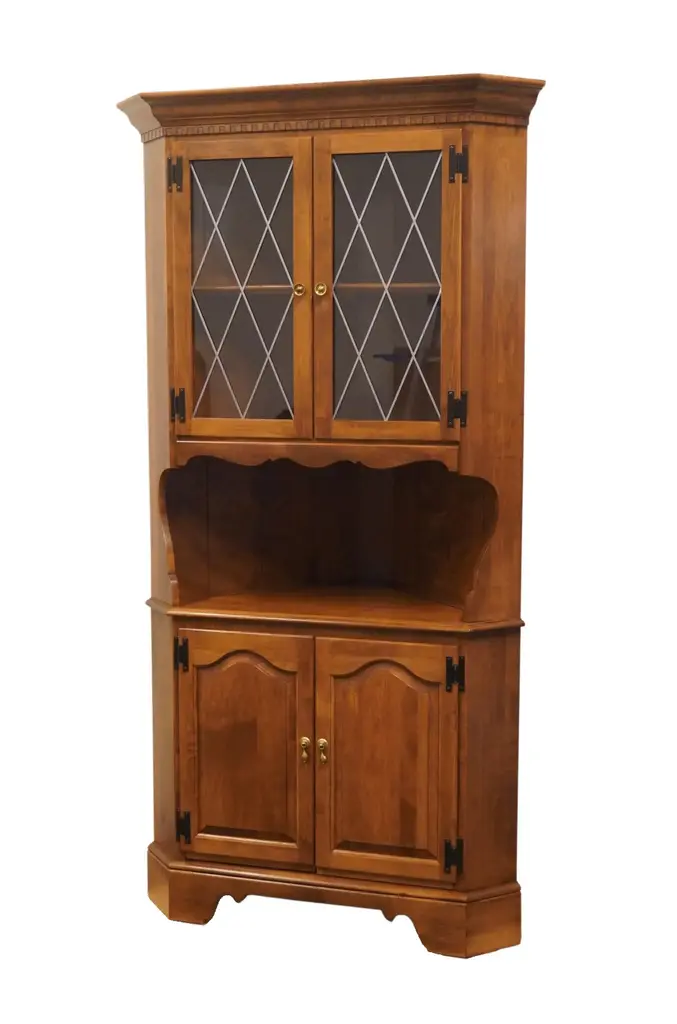 ETHAN ALLEN Heirloom Nutmeg Maple Colonial Early American Corner Cabinet 10-6046 74.25" High 36" Wide 22" Deep We specialize in high end used furniture that we consider to be at least an 8 on a scale of 1 to 10 regarding condition, unless otherwise noted.