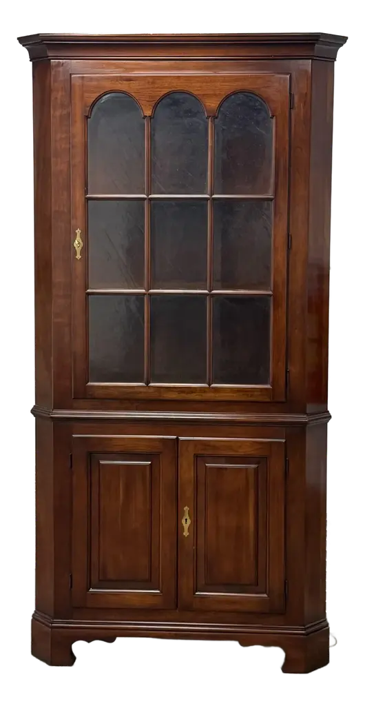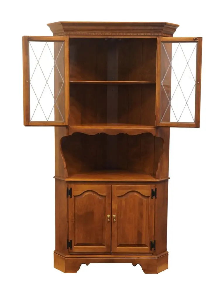 Ethan Allen Heirloom Nutmeg Maple Colonial Early American Corner Cabinet 10-6046