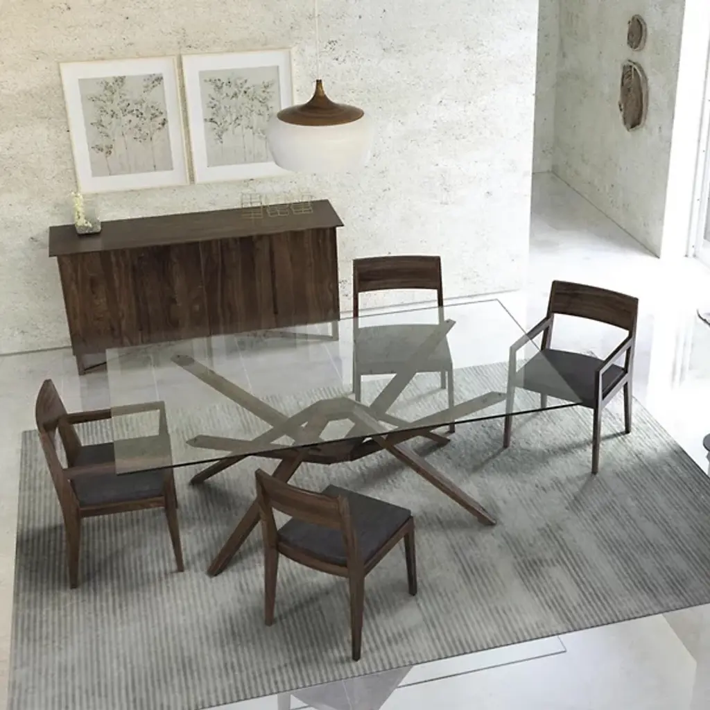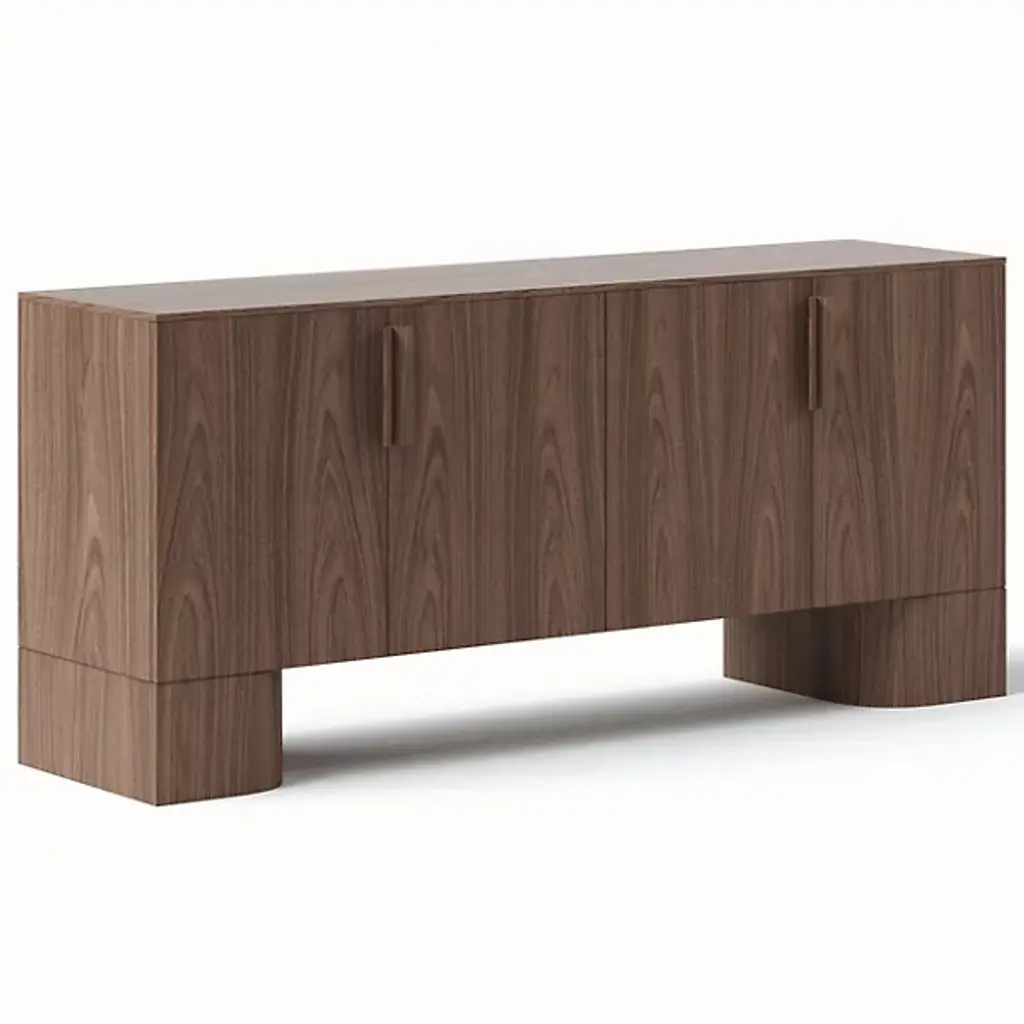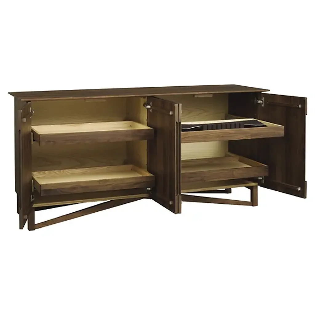 The Copeland Furniture Exeter Buffet is distinctive on a variety of levels. First, the materials; it is made entirely out of high-quality solid American black walnut or Solid Cherry Hardwood. Second is the beautifully angular base. Thirdly, is the extensive storage the buffet offers. Inside two cabinet spaces are two sliding drawers each. One drawer includes a liner to organize silverware.