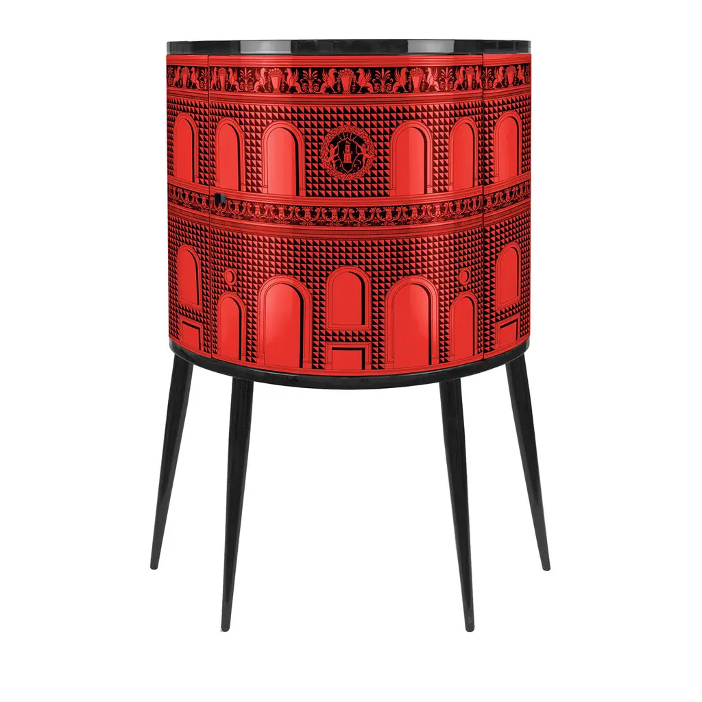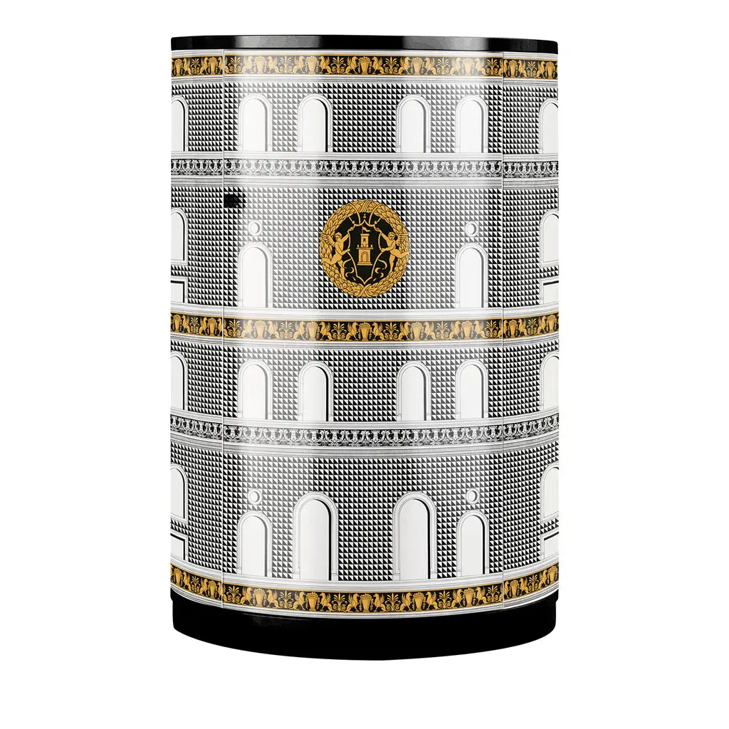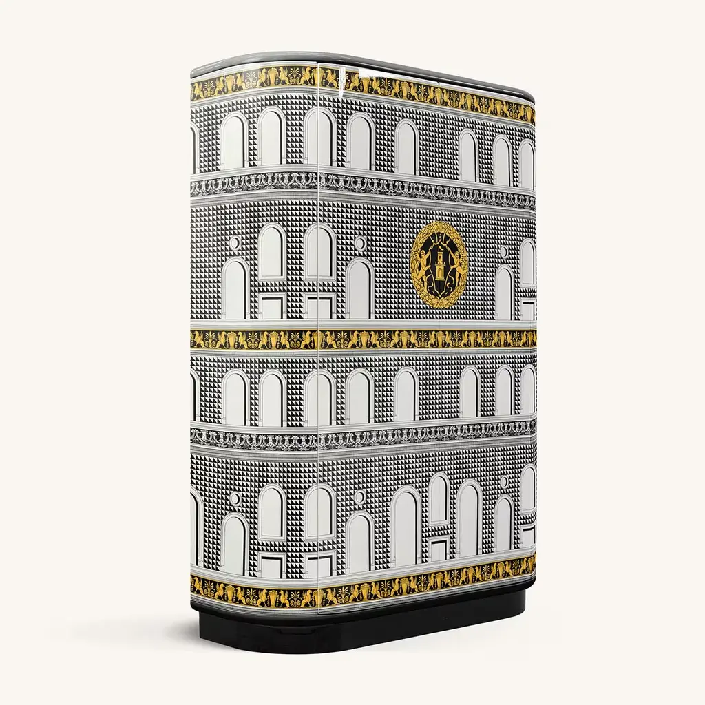 The Fornasetti curved cabinet is a storage piece of furniture designed by Barnaba Fornasetti. Its rounded shapes have quickly become a design icon. The motif evokes the Italian Renaissance, according to that metaphorical journey through time undertaken by Fornasetti with its Contemporary Antiquity collection for the Milan Design Week 2021. Each Fornasetti wooden piece is silkscreened and lacquered by hand and any minor discrepancies between similar creations are the result of craftsmanship.