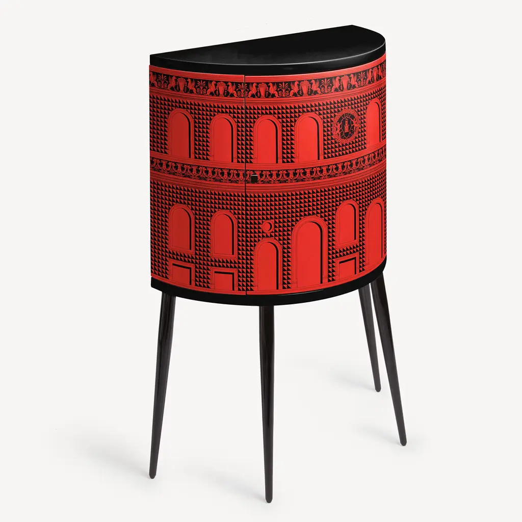Facciata Quattrocentesca Red Curved Small Cabinet