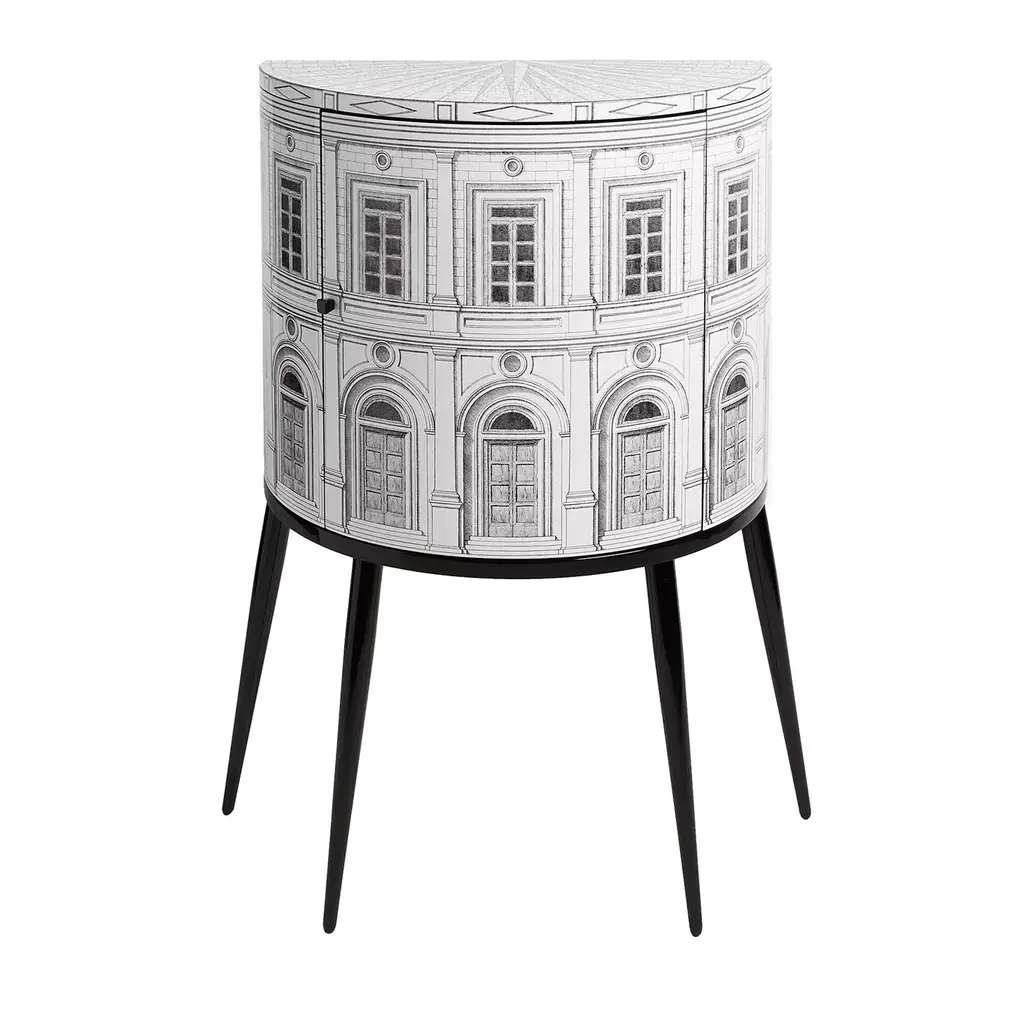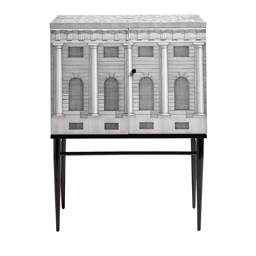 The Fornasetti cabinet is a wooden storage piece of furniture silkscreened and lacquered by hand following the Atelier's traditional method. The motif evokes the Italian Renaissance, according to that metaphorical journey through time undertaken by Fornasetti with its Contemporary Antiquity collection for the Milan Design Week 2021. Each Fornasetti wooden piece is silkscreened and lacquered by hand and any minor discrepancies between similar creations are the result of craftsmanship.