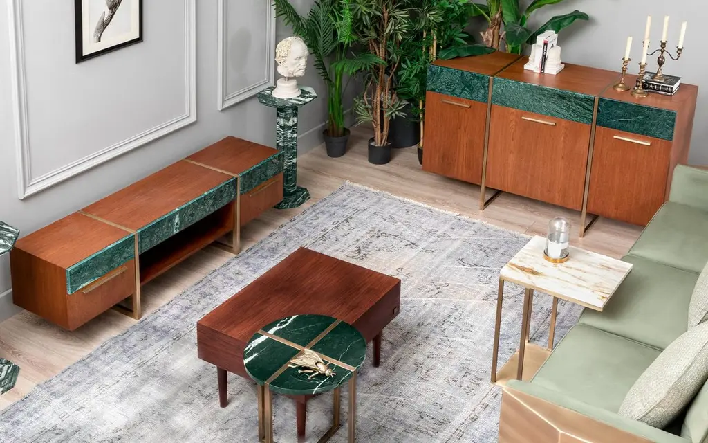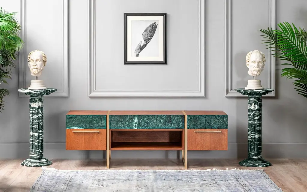 Famed Rainforest Marble Tv Cabinet With Drawers