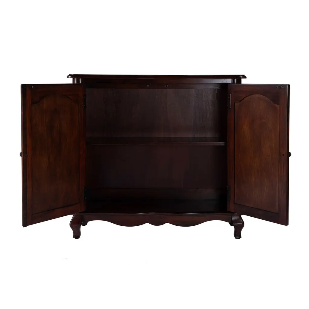 Discover the allure of timeless elegance with this gorgeous storage cabinet. Crafted from fine hardwoods and wood products, it exudes a charm that is both classic and captivating. The cabinet features two beautifully designed doors that open to reveal an adjustable shelf, offering versatile storage solutions for your cherished belongings. The antique brass hardware adds a touch of vintage sophistication, making this piece not just a functional addition to your home, but a statement of style and grace. Let this exquisite cabinet be the centerpiece of your living space, where beauty meets practicality in perfect harmony.