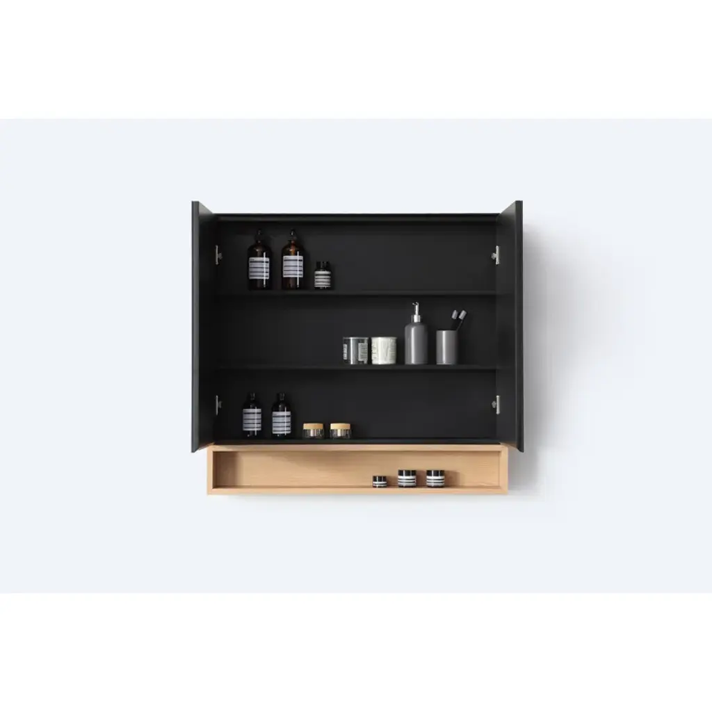 Ferdie is pleased to announce the medicine cabinet series. The elegant mirrored doors open easily to reveal three shelves with ample storage space. Underneath, an additional sturdy shelf made of high quality wood emphasizes the unit's utility. The clean lines and high quality build will bring a sense of organization and warmth to your bathing space.