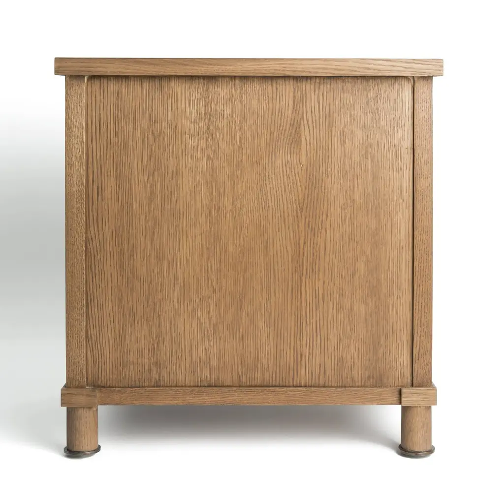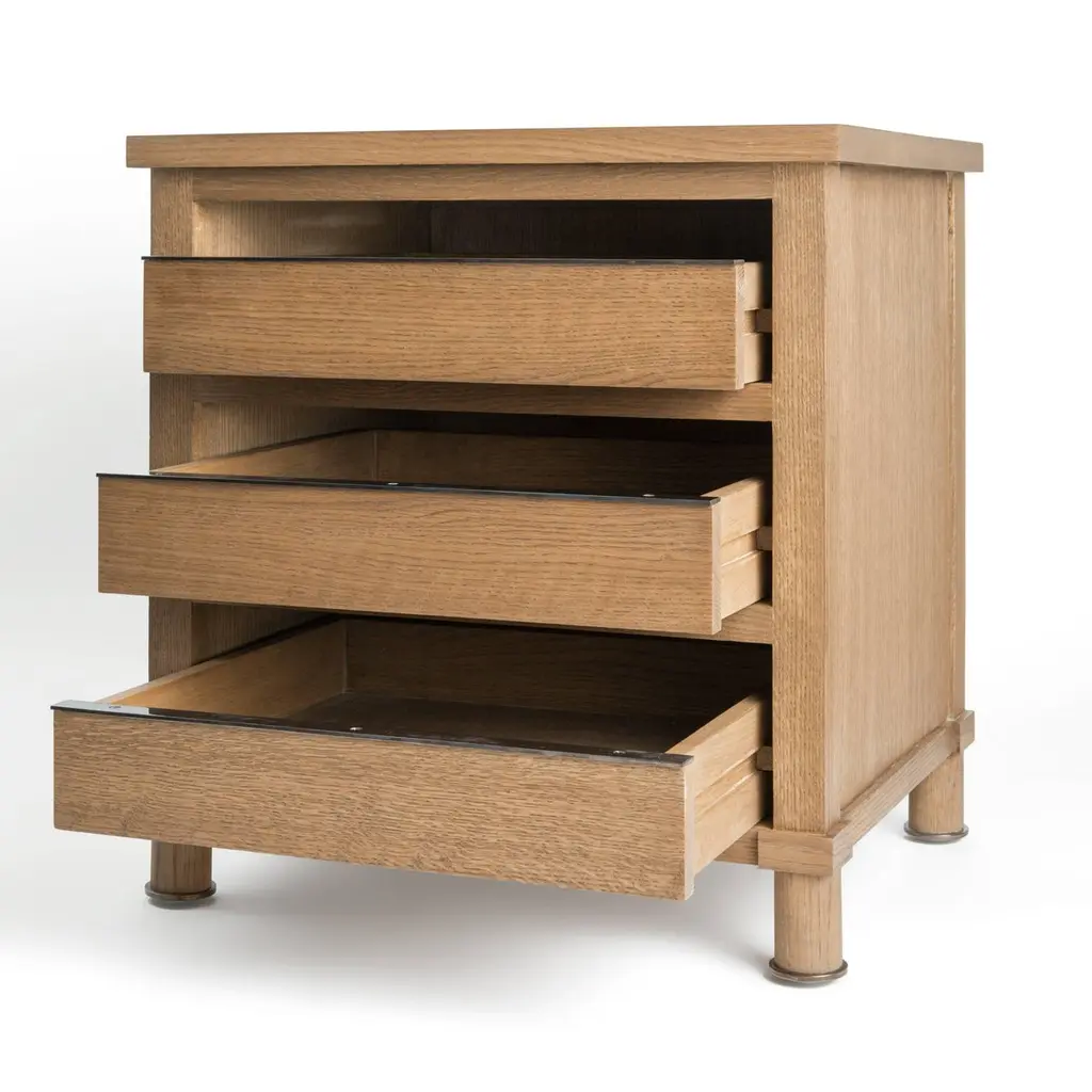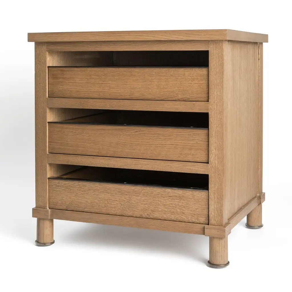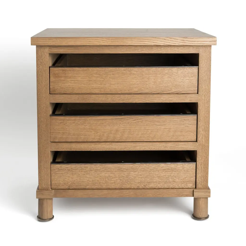 An original FERRER design with oak and bronze details.Functions nicely as a side table, nightstand, chest of drawers or flat file cabinet.We welcome inquires for custom commissions.