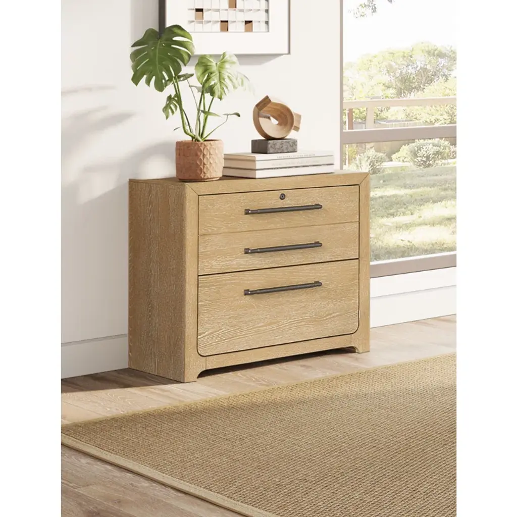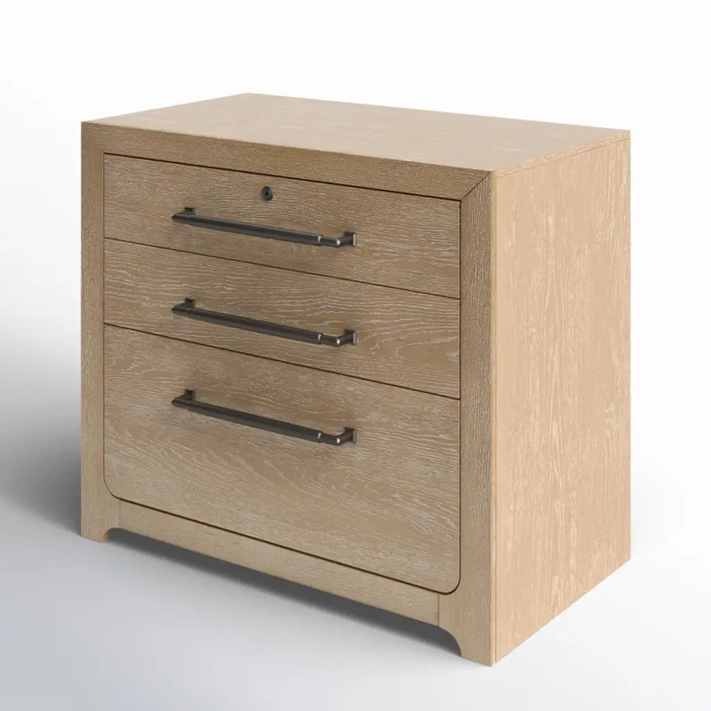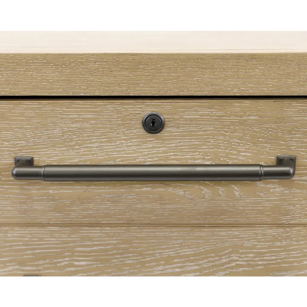 Introducing our collection meticulously crafted to elevate your workspace. Embracing a timeless aesthetic each piece boasts a natural oak finish delicately enhanced by a light glaze exuding sophistication and warmth. Featuring heavy bar pull hardware and bold U shapes on the desks and storage solutions that are sure to make a statement in any workspace.