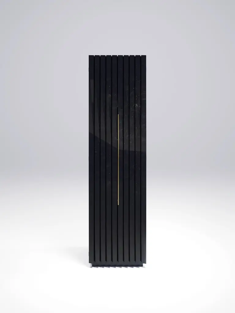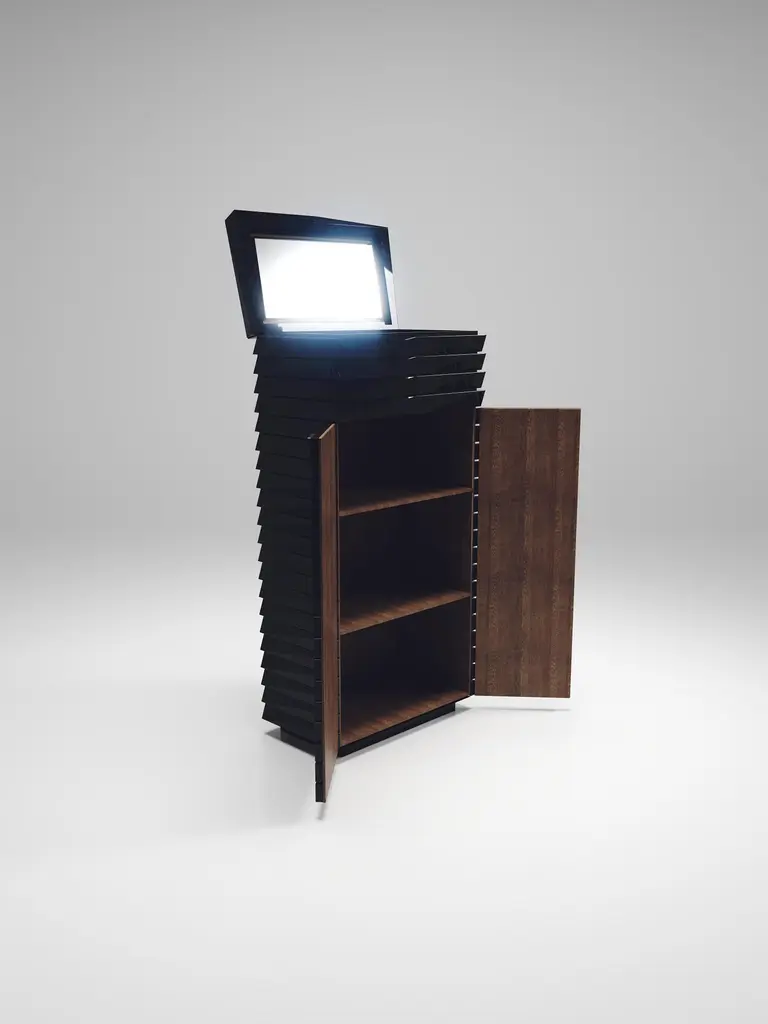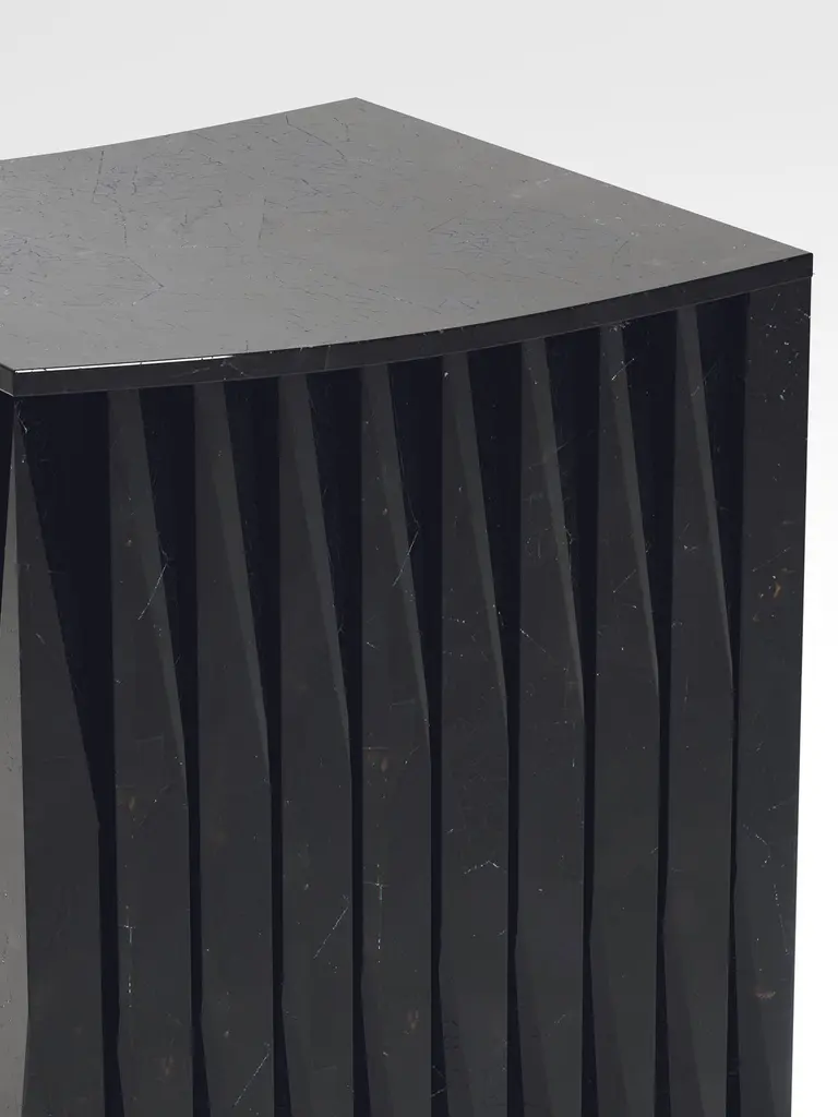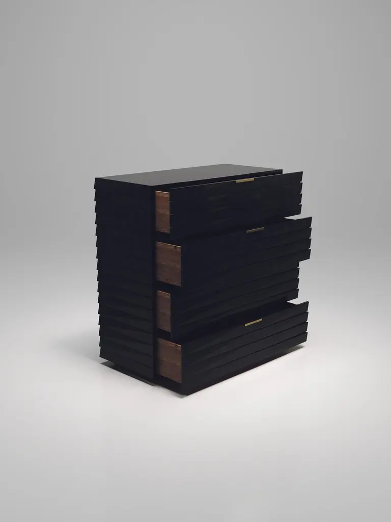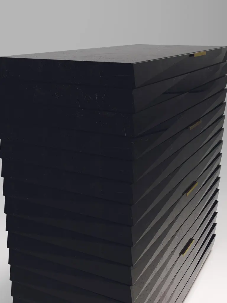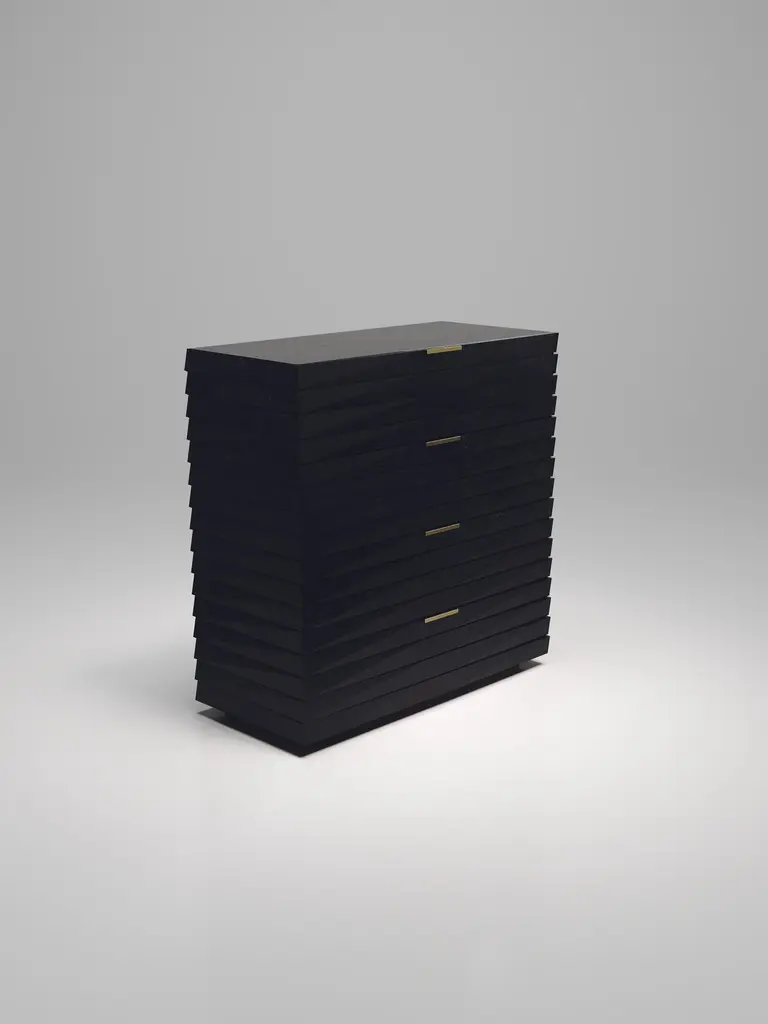 The Paris based label has distinguished themselves since their launch, with their iconic use of shagreen mixed with brass and other exotic materials. All furniture is handcrafted by skilled artisans, ultimately making each piece unique, designed in Paris and produced in the Philippines.The fluted cabinet by R & Y Augousti is a sleek and geometric design. The cream shagreen inlaid piece provides great utility while retaining a striking aesthetic with the incredible hand craved fluted details. This piece can be used as a bar cabinet or a jewellery vanity cabinet. This design includes a mirror, 3 open shelves and a total of 5 drawers with bronze-patina brass knobs, 2 of the drawers are inlaid in black shagreen. Available as a chest of drawers, stool and vanity cabinet as well as other finishes see images at end of slide. Custom color/sizing available on request.The dimensions of this piece are:15.75" x 13.75" x 57"All R & Y Augousti pieces are handmade by artisans, ultimately making each piece unique.Wipe clean with soft dry cloth.Acclaimed design duo Ria & Yiouri Augousti have established themselves since the 1990s as pioneers of modern-vintage style through their luxurious Art Deco inspired collections.The Paris based label has distinguished themselves since their launch, with their iconic use of shagreen mixed with brass and other exotic materials. All furniture is handcrafted by skilled artisans, ultimately making each piece unique. All shagreen-covered items should be kept out of direct sunlight, color variants may occur on the stingray and other exotic finishes, but this showcases the Parisian label's commitment to creating authentic luxurious products using natural components.