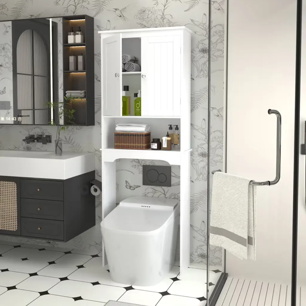 Fontoi Bathroom Storage Cabinet, Over The Toilet Storage Cabinet, Bathroom Space Saver, White, 9.02"*65.98"*24.8"