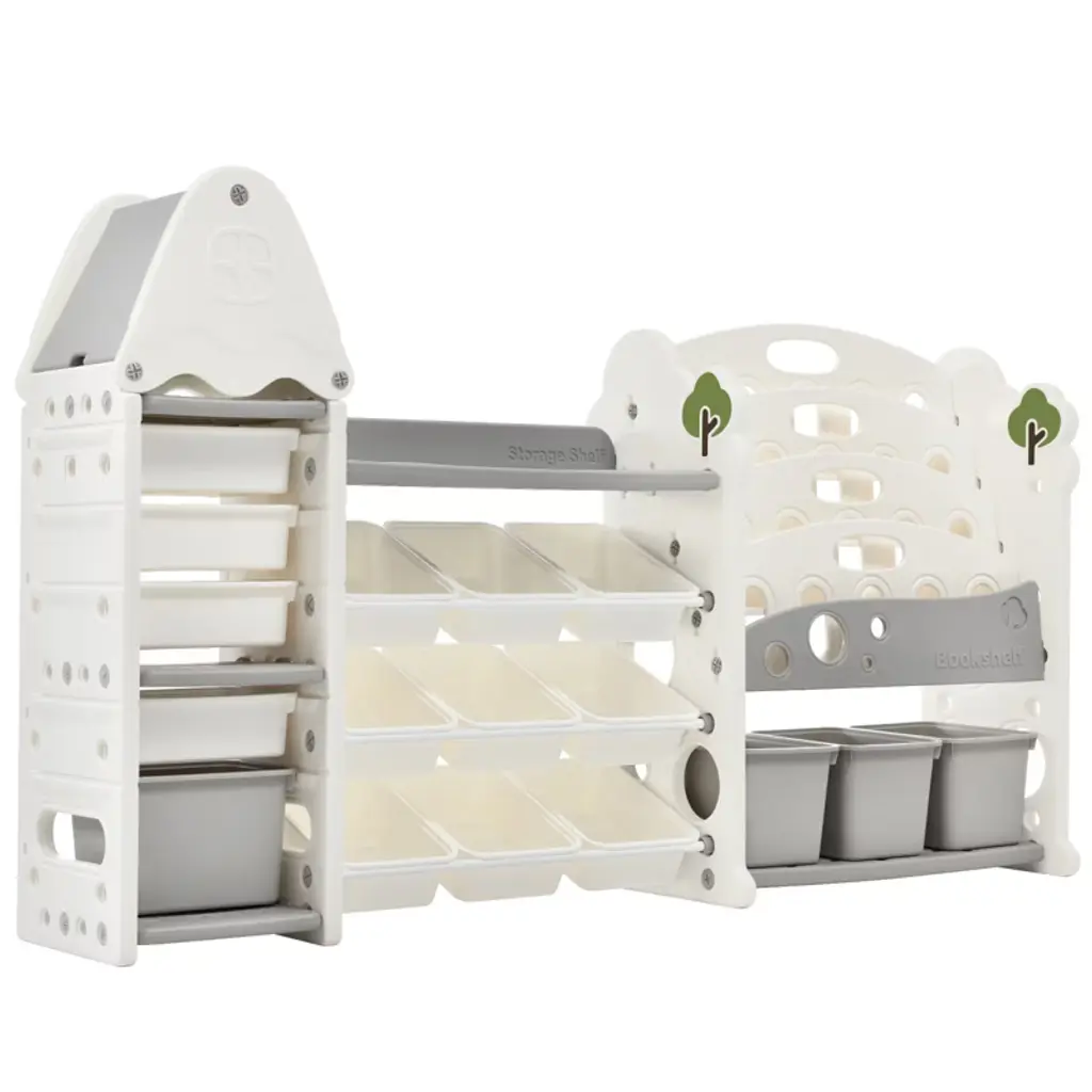 Fontoi Kids Toy Storage Organizer With 14 Bins, Multi-functional Storage Cabinet With Shelf&bins For Playroom, Bedroom, Gray, 17.3"*43.3"*72.8"