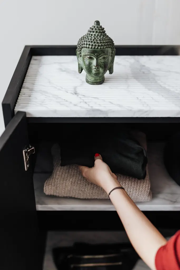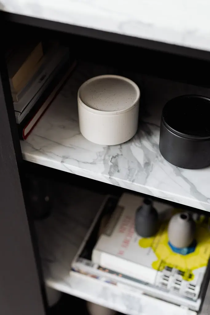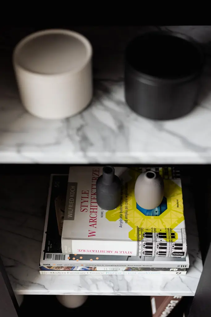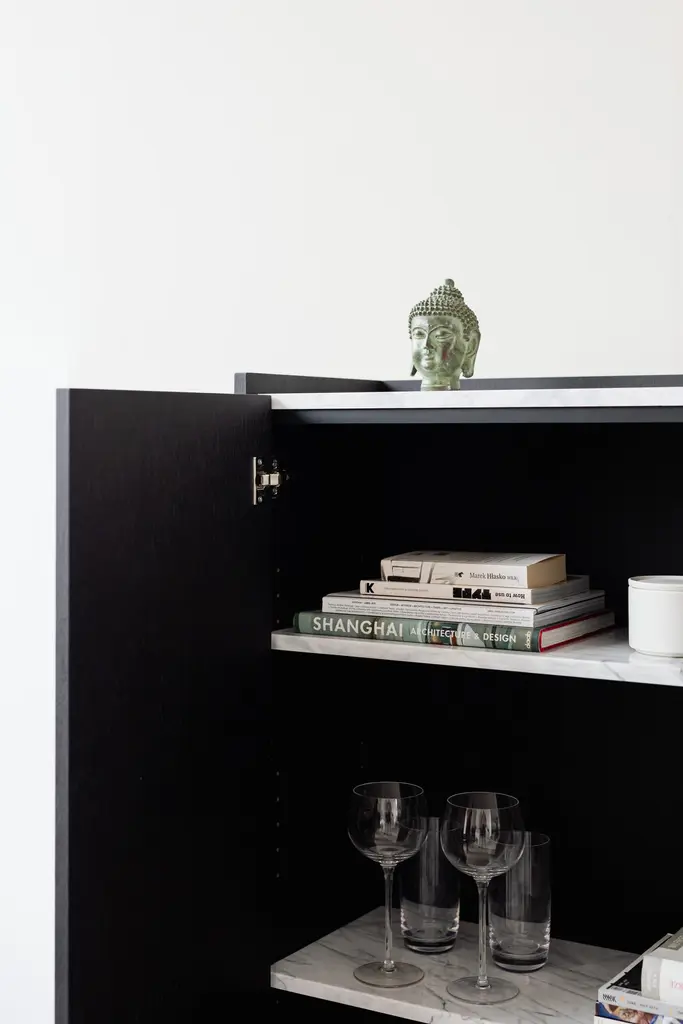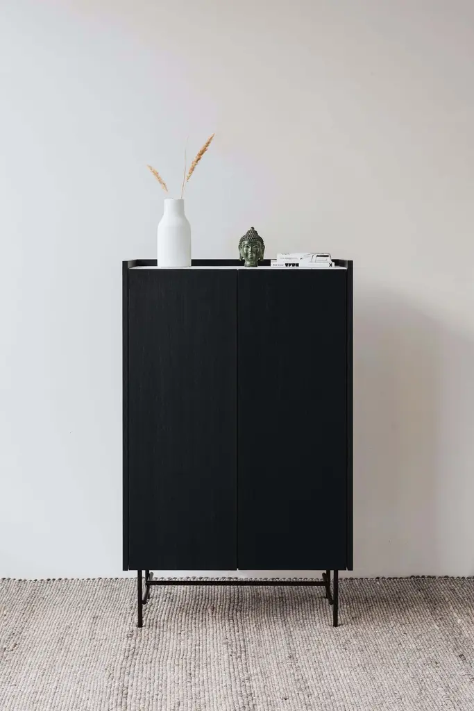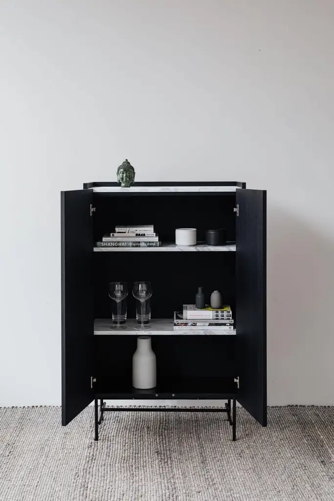 Forst Cabinet by Un’commonDesigned by Małgorzata Korycka.Dimensions: D 35 x W 80 x H 130 cm.Materials: Oak and brushed Carrara marble.Available in different oak finishes. Available in different marble options. You can compose the furniture from the FORST series according to your tastes by choosing the color of the body and the type of stone top. In the FORST Cabinet, you can also choose the type of internal shelves: veneered in the color of the body or marble in the color of the top. Please contact us.FORST Cabinet is the queen of storage. It is the perfect choice for your living room and bedroom, concealing two marble shelves to store items that deserve a special setting. The dresser has a TIP-ON opening system. The beautiful top is available in raw travertine or one of the following marble versions:• Carrara white grooved top with delicate stripes,• Carrara white wire-brushed top,• Nero Marquina black wire-brushed top. The body of the console is available in three different colors: natural, cognac, or graphite oak. The product is supported on slender steel legs. The dresser is also available with shelves in the same color as the body. Made in Poland. The shelves simply have to be placed inside the dresser.Our Polish workshop designs and hand-makes furniture from marble and steel. Our furniture should not only be well-designed – it should be a feast for the senses. Nothing can produce this effect quite as good as marble.It is a beautiful, refined, natural material used for centuries in architecture, art, and everyday life. There are many different stone quarries, offering different types and colors of marble. However, because it is a natural material formed in a very complex process, it is virtually impossible to extract two identical pieces of stone. In our opinion, in a world ruled by plastic and mass production, this thrill of surprise is a bit of genuine luxury, reserved only for natural materials and their enthusiasts.Thanks to the physical properties of stone and precise workmanship, Un’common furniture is built to last. Over time, a natural patina may form on the surface, adding extra charm to your beautiful and refined furniture, which – if treated well – will reward you every day. Nothing can beat the taste of coffee when you drink it at a marble table.