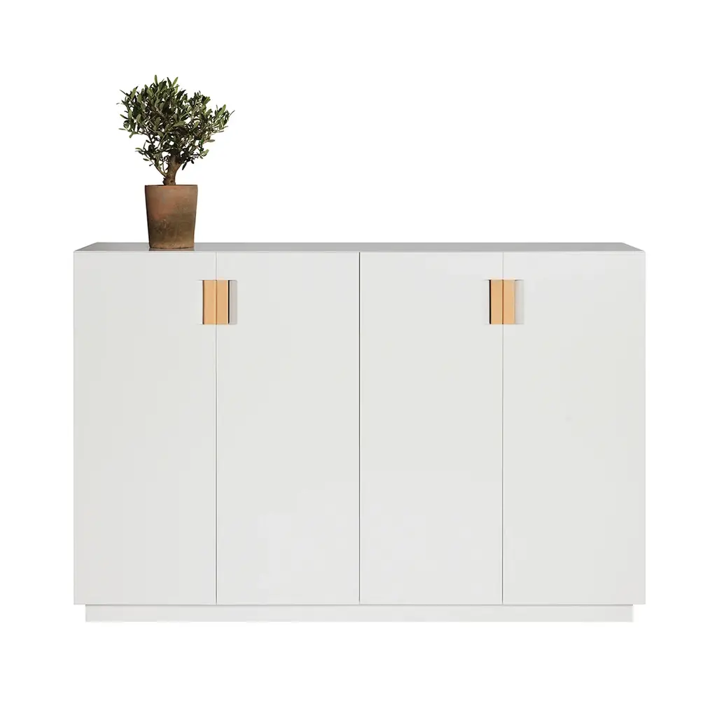 Present a smooth front to the world despite what might be hiding within this roomy storage cabinet with double folding doors. From Asplund’s Frame collection by Swedish designers Anya Sebton and Eva Lilja Löwenhielm, the unit 160 High opens from the center with to reveal 2 interior compartments with 4 lacquered shelves. The striking monochrome concept is rendered in lacquered MDF in a choice of Nordic tones with genuine leather pull handles providing a visual contrast.