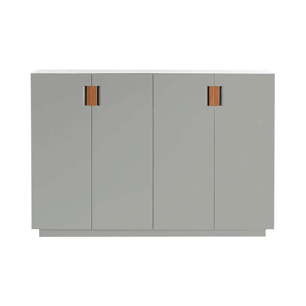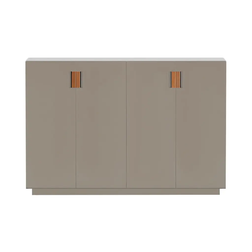 Present a smooth front to the world despite what might be hiding within this roomy storage cabinet with double folding doors. From Asplund’s Frame collection by Swedish designers Anya Sebton and Eva Lilja Löwenhielm, the unit 160 High opens from the center with to reveal 2 interior compartments with 4 lacquered shelves. The striking monochrome concept is rendered in lacquered MDF in a choice of Nordic tones with genuine leather pull handles providing a visual contrast.