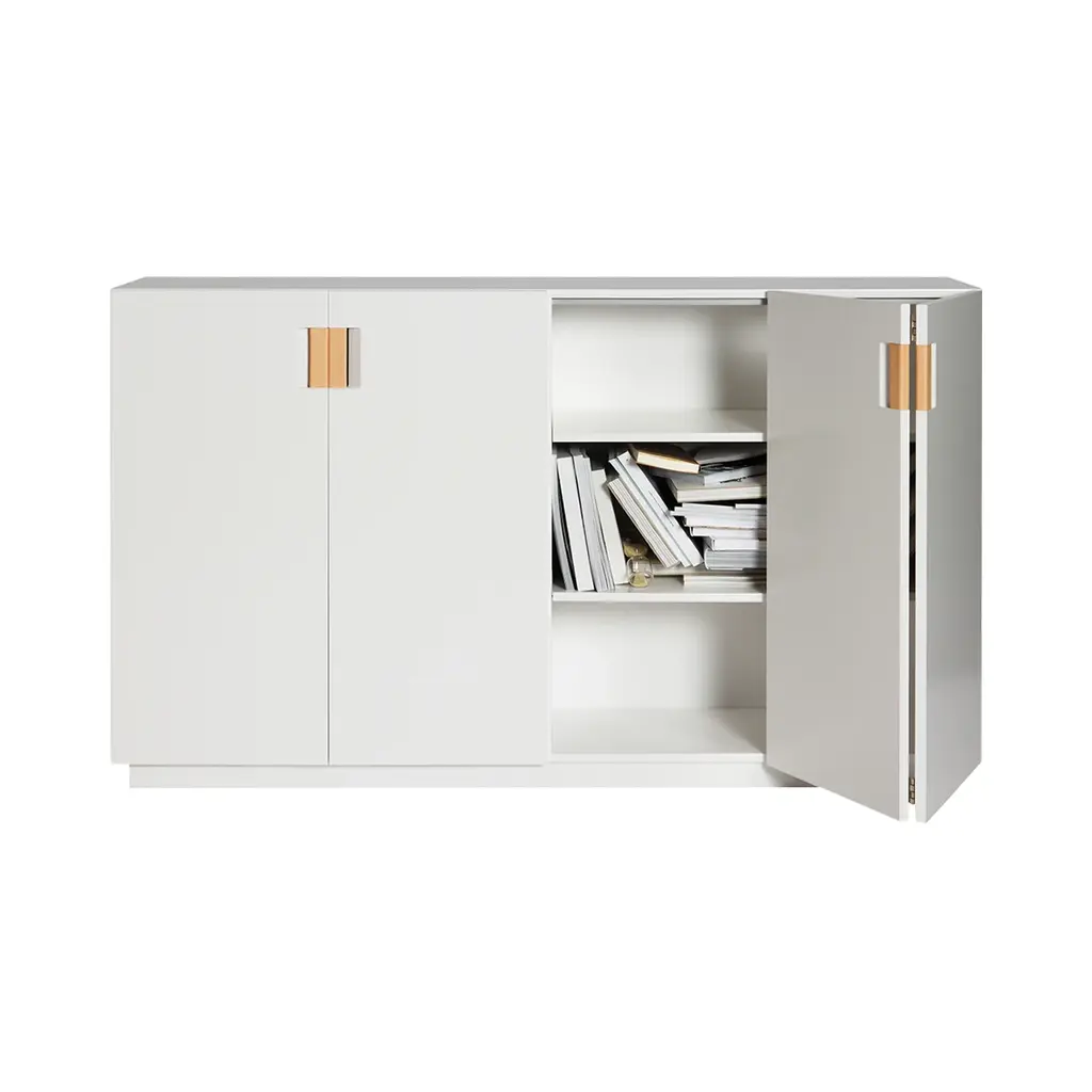 Present a smooth front to the world despite what might be hiding within this roomy storage cabinet with double folding doors. From Asplund’s Frame collection by Swedish designers Anya Sebton and Eva Lilja Löwenhielm, the Frame 160 Medium is rendered in lacquered MDF in a choice of Nordic tones with genuine leather pull handles providing a visual contrast. Inside, there are two compartments and four lacquered adjustable shelves, offering flexible storage options.