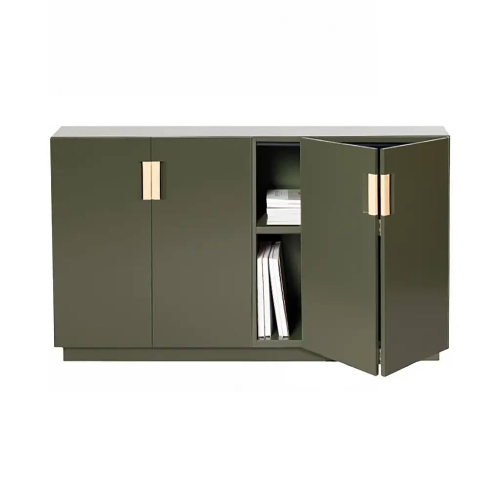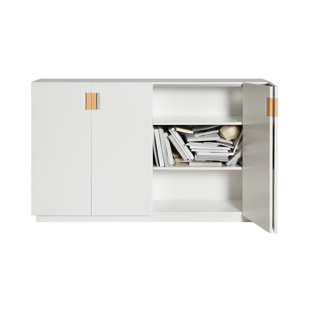 Present a smooth front to the world despite what might be hiding within this roomy storage cabinet with double folding doors. From Asplund’s Frame collection by Swedish designers Anya Sebton and Eva Lilja Löwenhielm, the Frame 160 Medium is rendered in lacquered MDF in a choice of Nordic tones with genuine leather pull handles providing a visual contrast. Inside, there are two compartments and four lacquered adjustable shelves, offering flexible storage options.