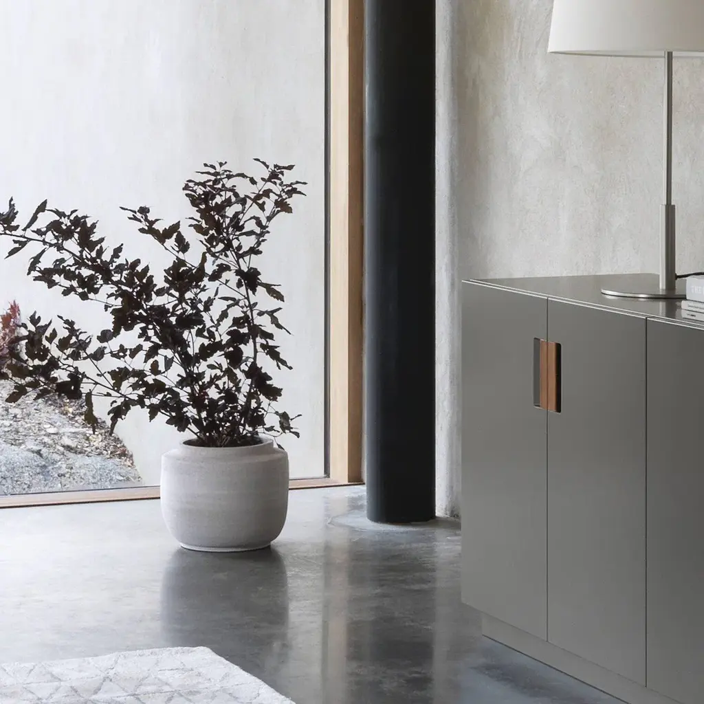 Expanding on the Frame concept, this handsome cabinet hides its contents behind a folding door opening from the right side. Swedish designers Anya Sebton and Eva Lilja Löwenhielm team up for Scandi brand Asplund with a strikingly monochrome storage system made from lacquered MDF in subdued Nordic colorways. The designers add pull handles in genuine leather for an intriguing textural counterpoint.