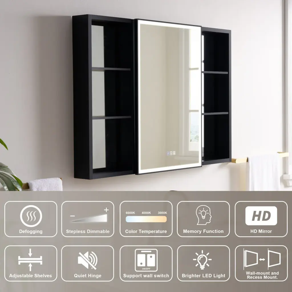 Framed Led Medicine Cabinet Recessed/surface Mount, Dimmable, Anti-Fog, Black, 44"x30" Left Door