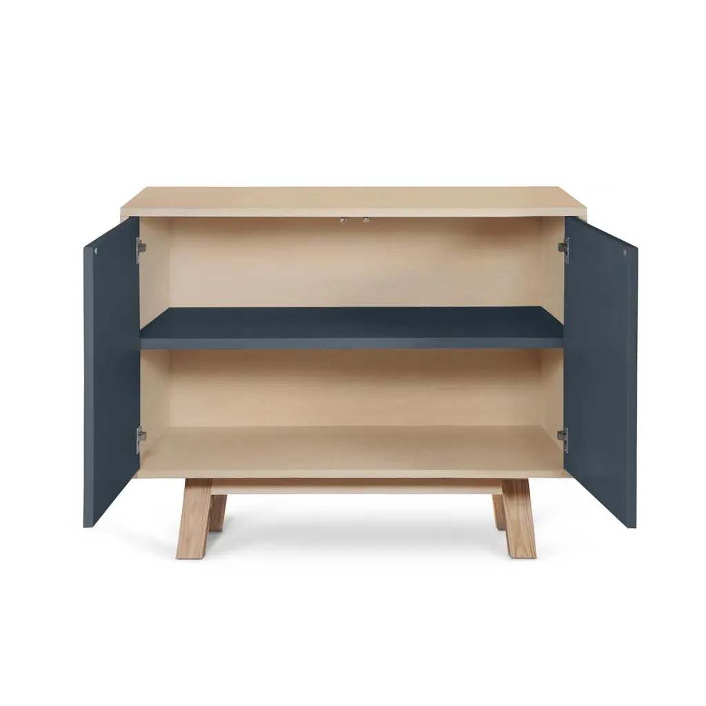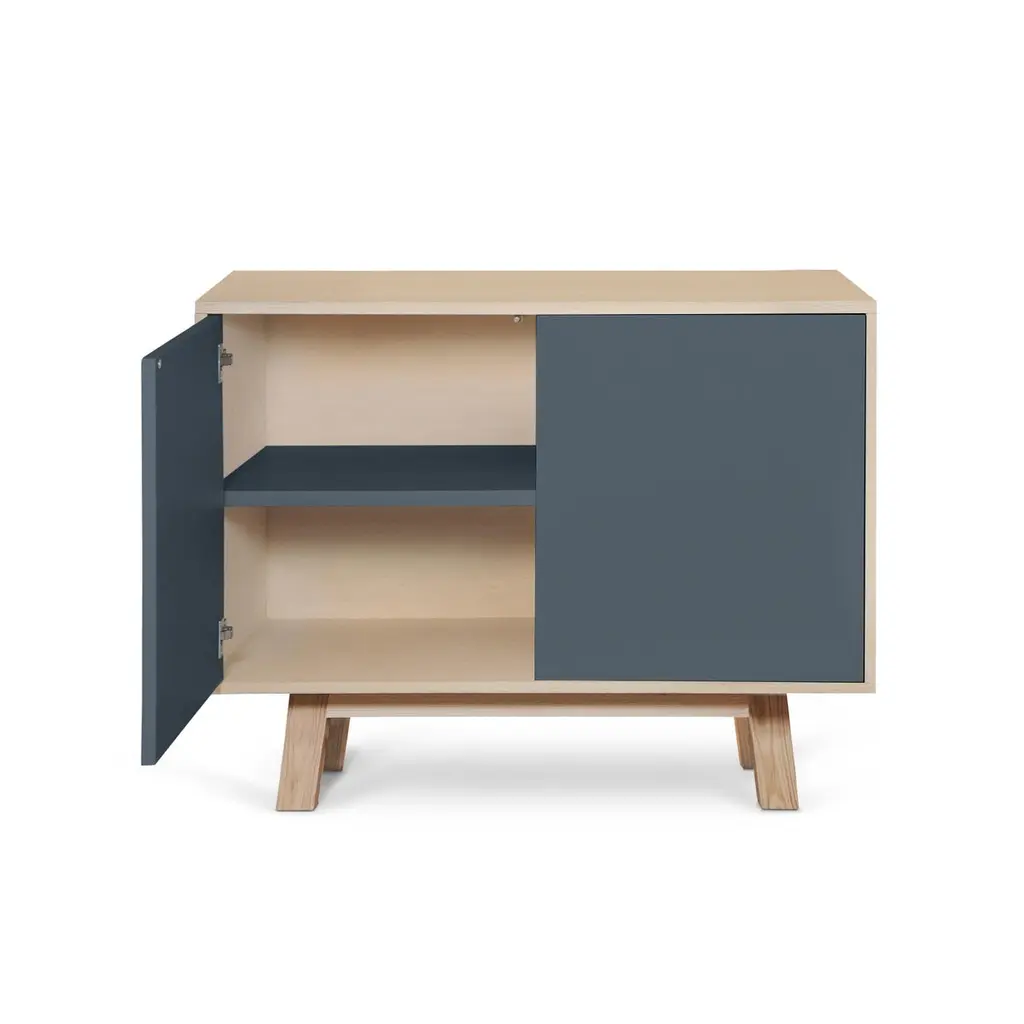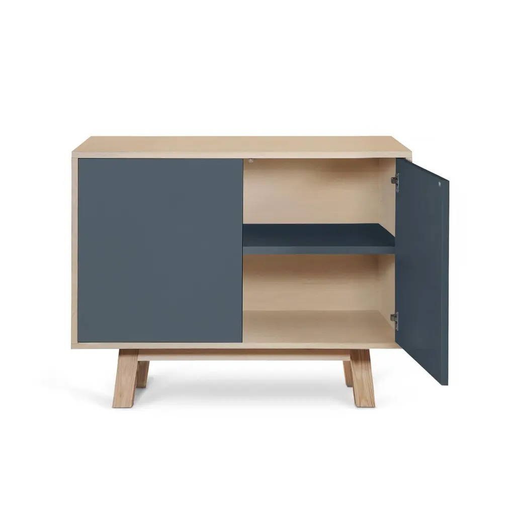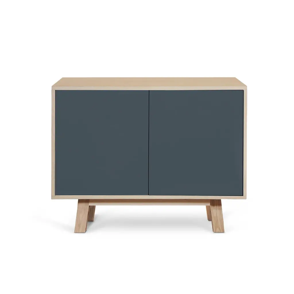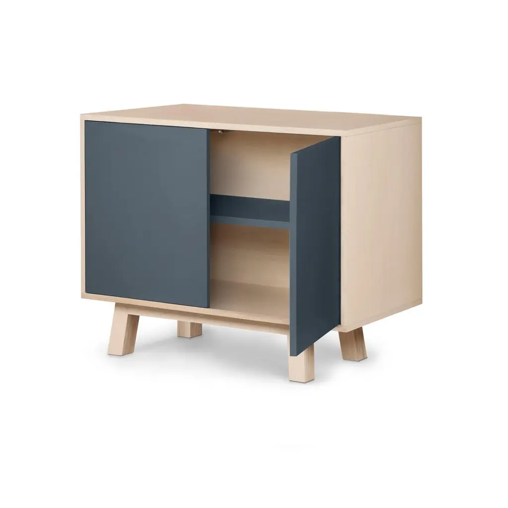This 2-door cabinet is designed by Eric Gizard, Paris and 100% handcrafted in France.It is made of French solid ash wood, veneer adh and lacquered doors in MDF panels. The 2 doors open with a "push-to-release" pressure. A shelf in solid ash wood is placed behind the 2 doors and adjustable on (supplied) cleats.The shelf colour is identical to the doors' colour.The wood comes from sustainably managed French forests. ÉGÉE collectionThis sideboard is part of the ÉGÉE collection designed by Eric Gizard in Paris. Eric combines the sleek and refined codes of Scandinavian design with natural materials and muted and "trendy" colorful lacquers.MON PETIT MEUBLE FRANCAISprovides you exclusively with 100% Made in France furniture pieces. The manufacture and finishes are of very high-end quality, carried out in French craft workshops, in the west countryside of France: Loire and Bretagne.