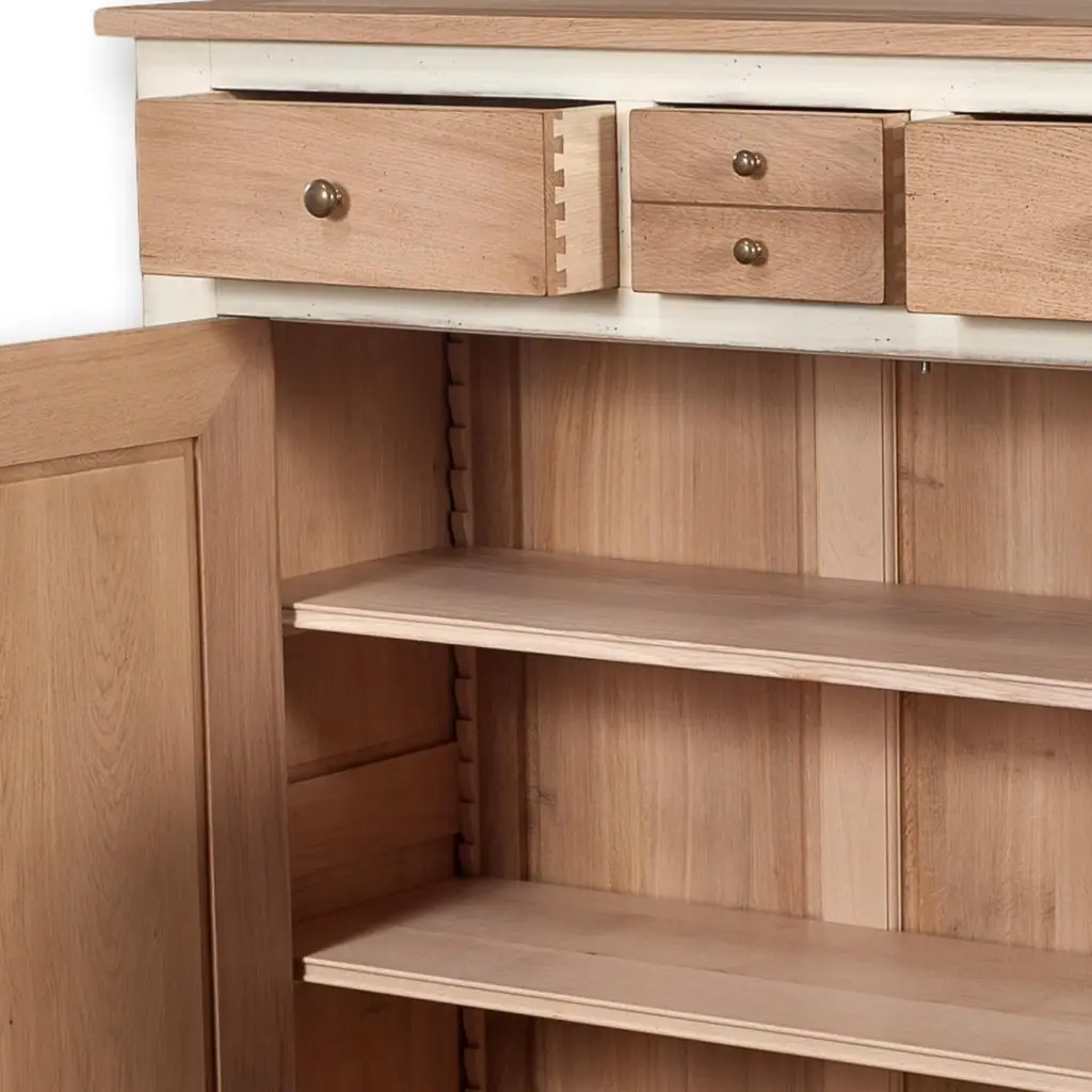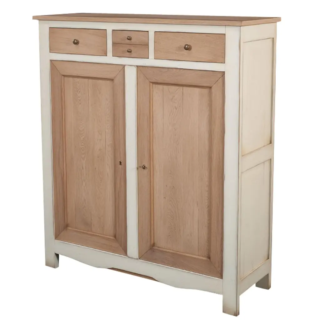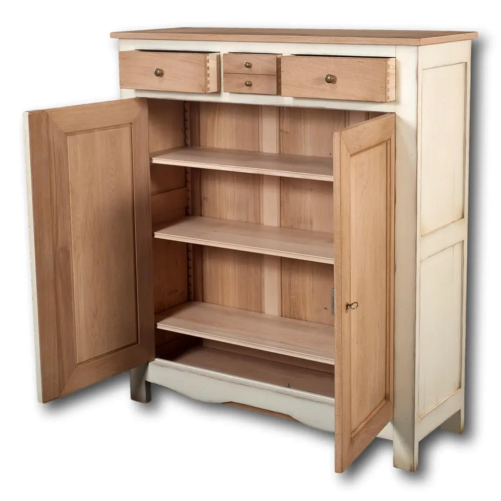 This Cabinet is a handcrafted typical French Countryside style. It is a 100% made in France with French solid oak.This neat, white cream lacquered and chestnut stained cabinet features 3 drawers, 2 doors, a working lock and key and 3 oak inside shelves. The sourcing of the solid wood comes from sustainably managed French forests.GONTIER, a brand of MON PETIT MEUBLE FRANCAIS group, provides you exclusively with 100% made in France classical and contemporary pieces of furniture.The manufacture of each furniture is made accordingly to traditional French techniques of woodworking by small craft workshops in the western countryside of France (Loire Valley and Bretagne). We offer a 5 year warranty on each piece.