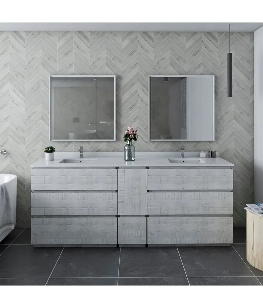 Fresca Formosa Floor Standing Bathroom Vanity, Rustic White, 82", Cabinet Only