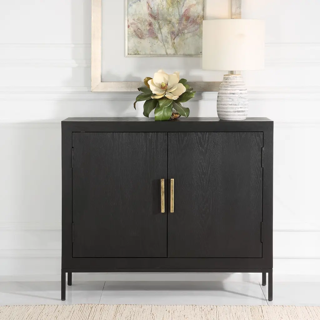Front Range Dark Ebony Oak Veneer And Aged Gold 2 Door Cabinet