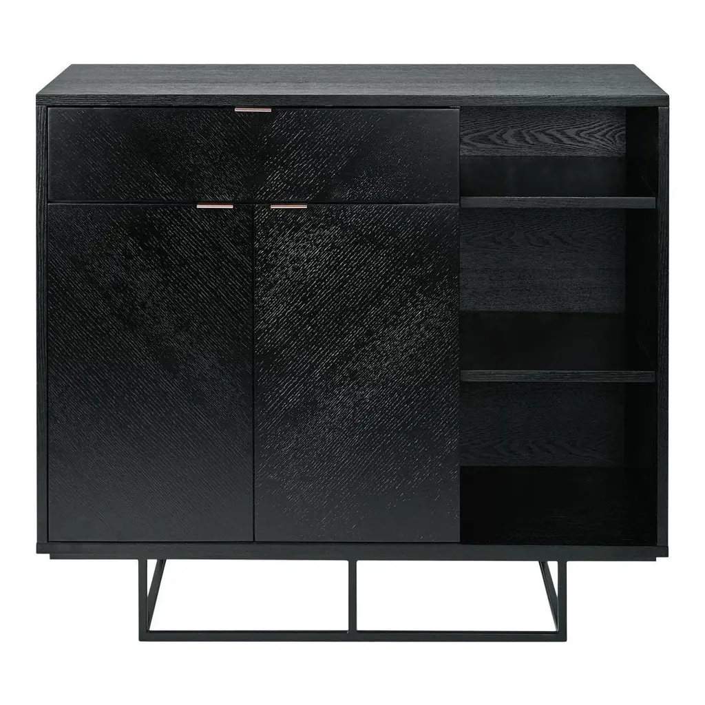 The Front Range Cabinet's Streamlined Design And Classic Finishes Make It A Perfect Addition To Virtually Any Space. The Exterior Is Finished In A Dark Ebony Oak Veneer, Accented By Linear Iron Pulls In Aged Gold. Has One Interior Fixed Shelf.