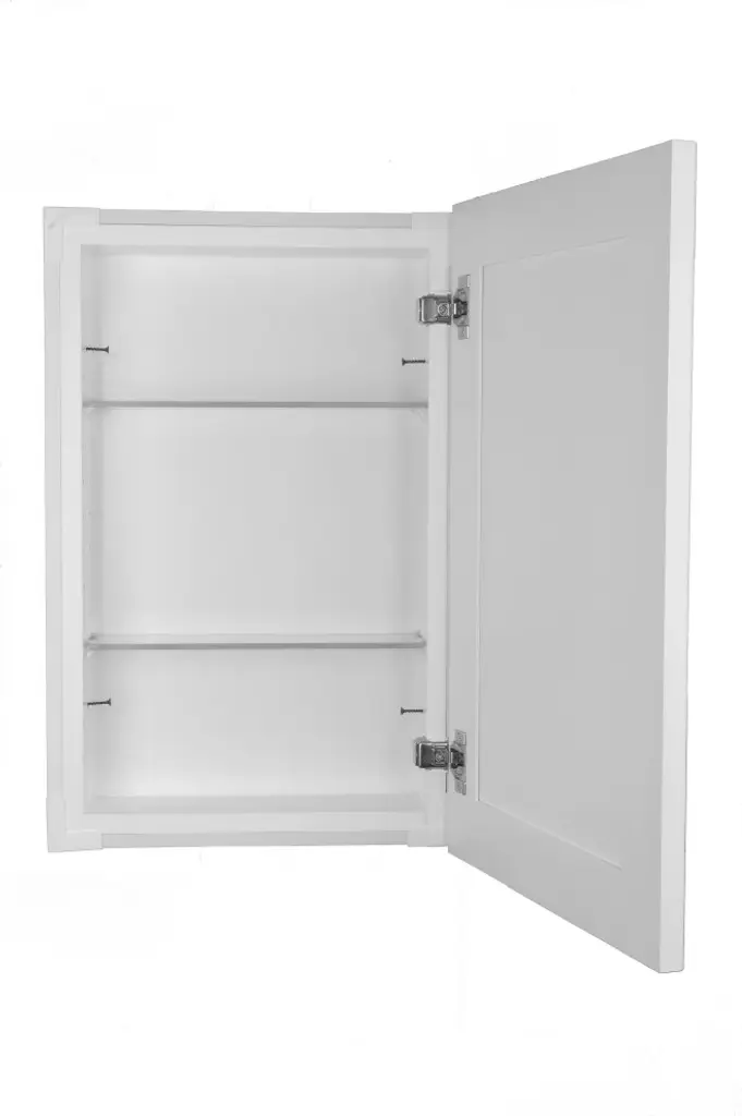 Perfect for any bathroom. Recesses in the wall between the studs, and simply screws to the studs on each side of the opening. Only the door is outside the wall. Fully adjustable glass shelves inside. Our unique, patented design of shelf supports keeps each shelf in place. Concealed hinges with soft close built in assuring the door will never slam shut but softly close on its own instead. The box is SOLID pine and the Shaker style door is SOLID maple. We''ve painted the inside of the box white, so you don''t have to! The box is 3.5" deep inside and gives you plenty of usable depth, but fits in standard 2x4 walls. Cabinet box is 12.5" wide inside. The door is reversible to open either Left or Right. Completely assembled! All you need to do is put one screw in each hinge to mount the door. Then insert it into the wall and screw it to the studs with included screws. If you are replacing a current cabinet, measure your wall opening! White plastic trim surround covers the rough edges of your opening up to 1/2" all around. The door covers the trim surround when closed so the only thing you see outside the wall is the door itself. Made in Sarasota FL. The door comes in three variants: Unfinished Wood - The door can be painted or stained.Primed Gray - Ready for you to paint.White enamel finish.