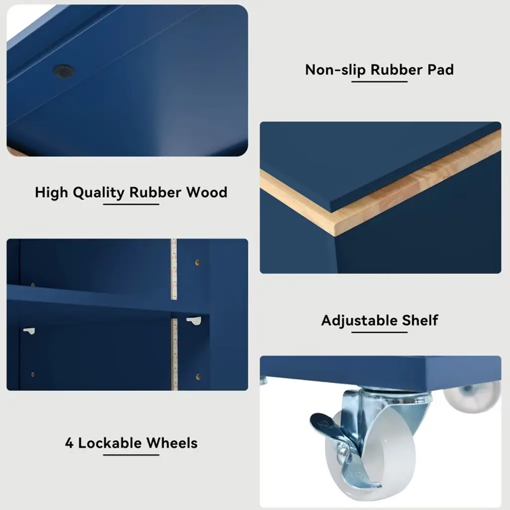 Unleash your creativity with our adaptable kitchen island, featuring an adjustable table and storage cabinet that can be customized to your unique needs. The fluted glass doors, enhanced with white LED lights, add a touch of elegance and ambiance to your kitchen. Equipped with a convenient power outlet, including 2 USB ports and 3-hole sockets, this island offers practicality and versatility. Constructed from high-quality MDF and smooth rubber wood, it promises durability and easy maintenance. With ample storage space and the option to extend the desktop to 73.5, it's perfect for organizing your culinary essentials. The island's 8 x 361-degree wheels, including four lockable ones, provide effortless mobility and stability. Simple to assemble with clear instructions, this kitchen island is a blend of innovation, style, and functionality
