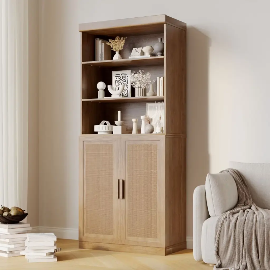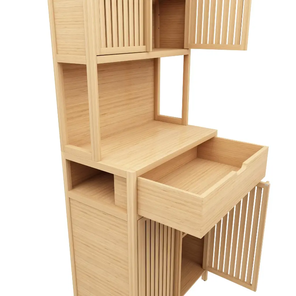 Gdfstudio Amanda Magnetic Doors 72" Tall Bamboo Storage Cabinet With Drawer, Natural