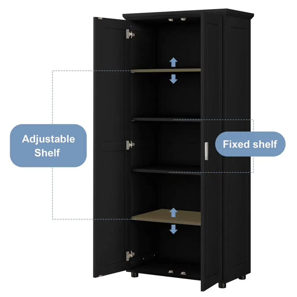Organize your home effortlessly with the freestanding storage cabinet with two doors, a versatile solution for bathroom storage, office organization, and living room use. Crafted from premium wood with a smooth waterproof finish, this tall cabinet offers durability and easy maintenance. Inside, it features five storage sections, including two adjustable shelf and two fixed shelves, allowing you to store towels, office supplies, or household items with flexibility. The metal handles and stainless steel hinges ensure smooth opening and closing while adding a sleek modern touch. For safety, an anti-tipping device secures the cabinet to the wall, making it family-friendly. With its minimalist style and ample storage capacity, this cabinet complements modern, transitional, and American light retro decoration styles. Material: MDF Assembly Required Dimensions: 14.60 inches deep x 29.25 inches wide x 71.25 inches high