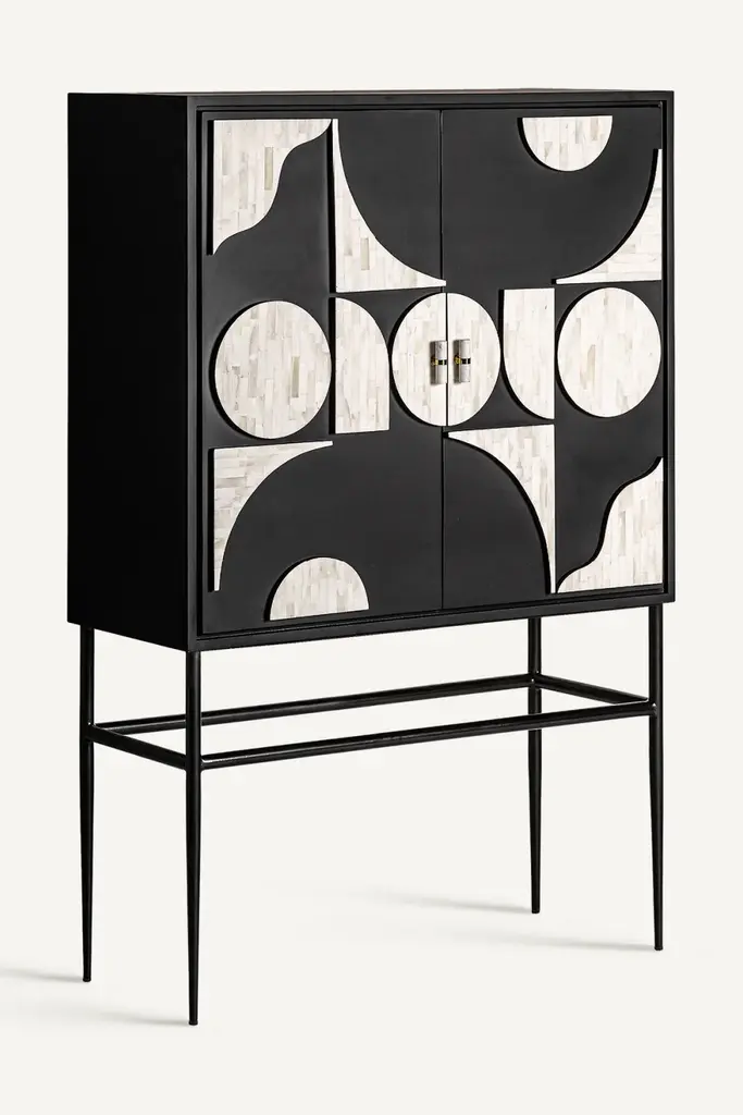 The Athy Cabinet by Vical Home combines iron and bone in a striking design in black and white. Its dimensions make it the perfect complement to your dining room, adding a distinctive and sophisticated touch. The dining room cabinet is the ideal choice to highlight your space.