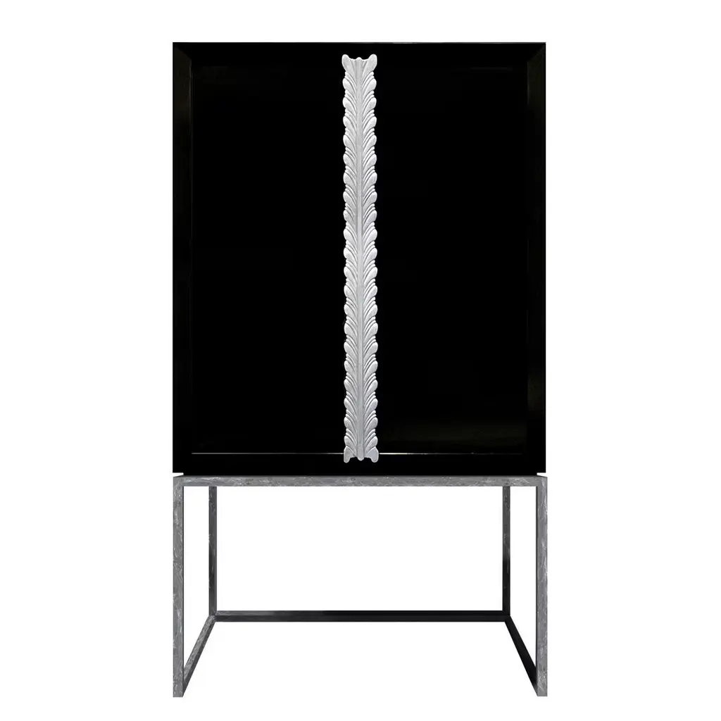 Experience sophistication and luxury with our Glossy Lacquer Cabinet Giorgio I Cabinet. Inspired by Louis XV pieces and adorned with Chinese lacquered panels, it exudes elegance and charm. Perfect for use as a bar, it comes with a spacious interior featuring a single drawer and glass shelves, complemented by oversized recessed metal handles. Complete your collection with Giorgio II for an unmatched display of style.