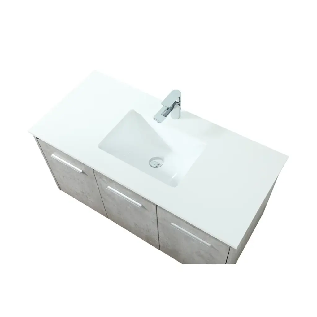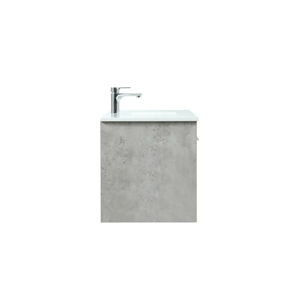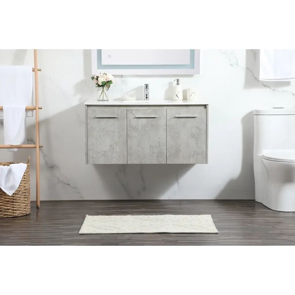Save space and make your bathroom appear bigger with this floating vanity finish. Its minimal design will leave you in awe, while its clean lines will leave your room fresh and uncluttered. The Single cabinet opens with soft closing doors that allow for storage to place extra towels or various other essentials. It's low maintenance and durable engineered marble top will surely last through many washes.