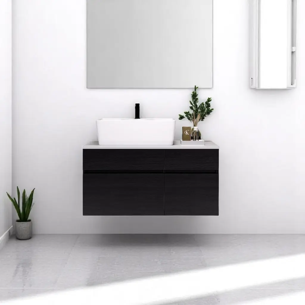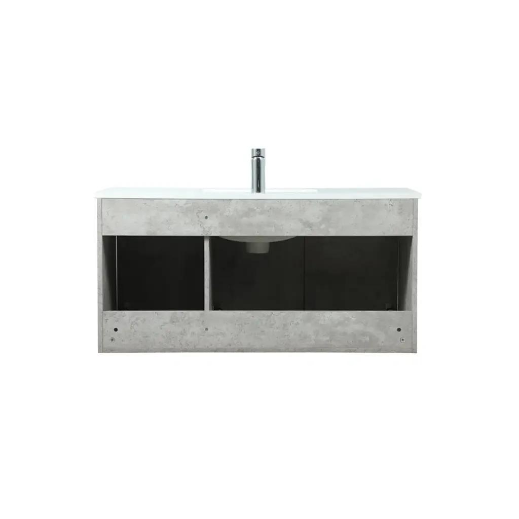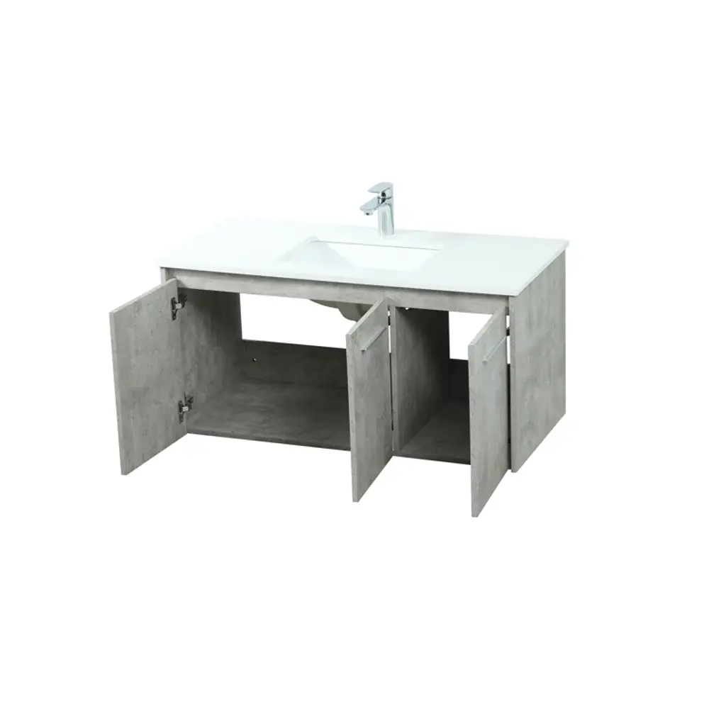 Save space and make your bathroom appear bigger with this floating vanity finish. Its minimal design will leave you in awe, while its clean lines will leave your room fresh and uncluttered. The Single cabinet opens with soft closing doors that allow for storage to place extra towels or various other essentials. It's low maintenance and durable engineered marble top will surely last through many washes.