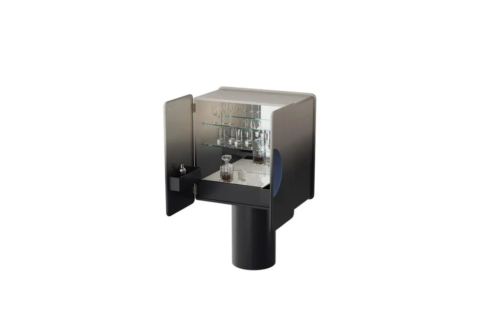 Gradient Black Blue Cabinet With Two Doors On Cylinder Base By Ultramobili