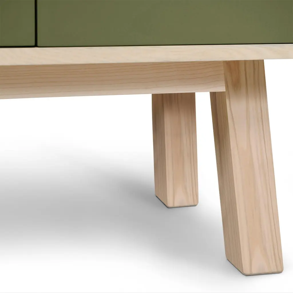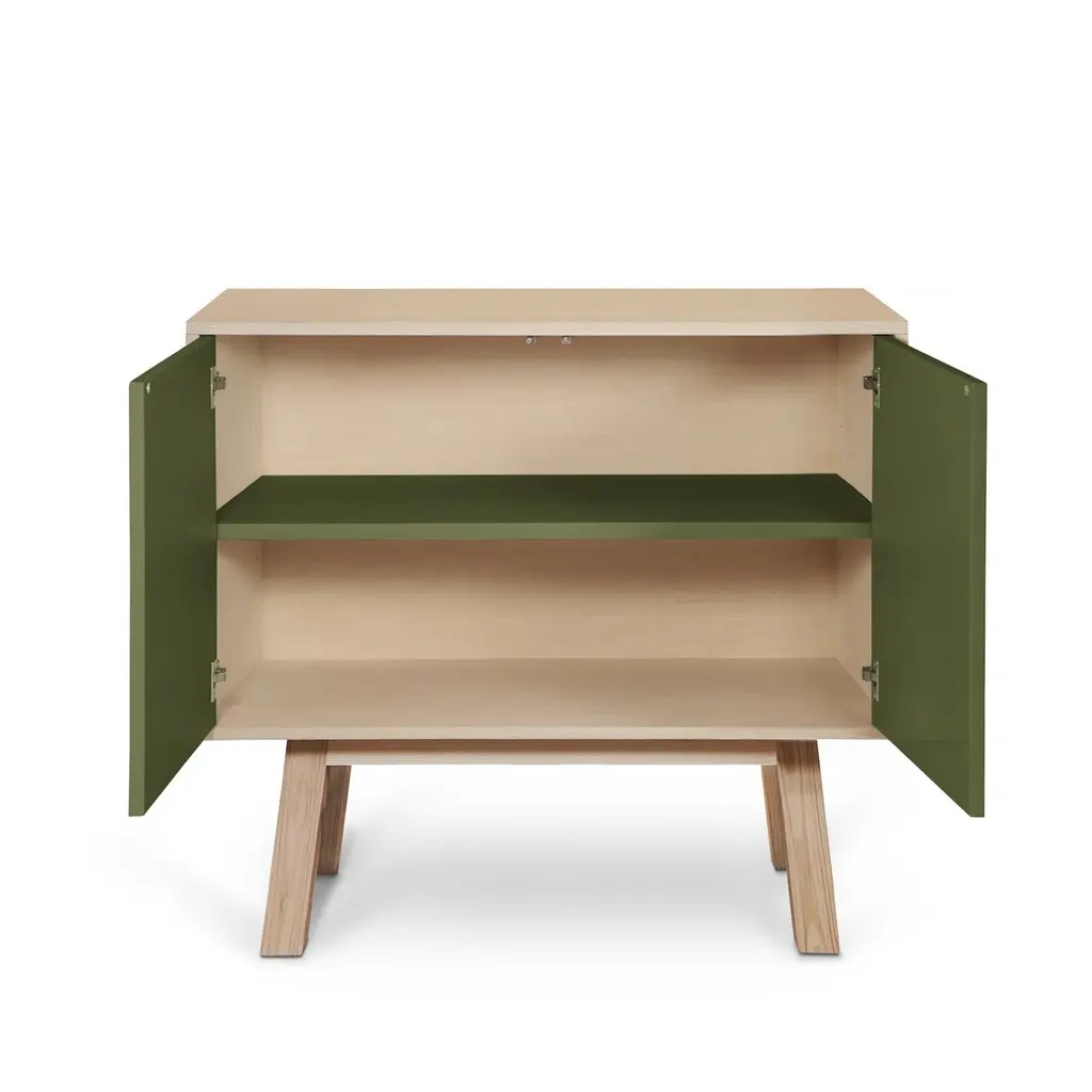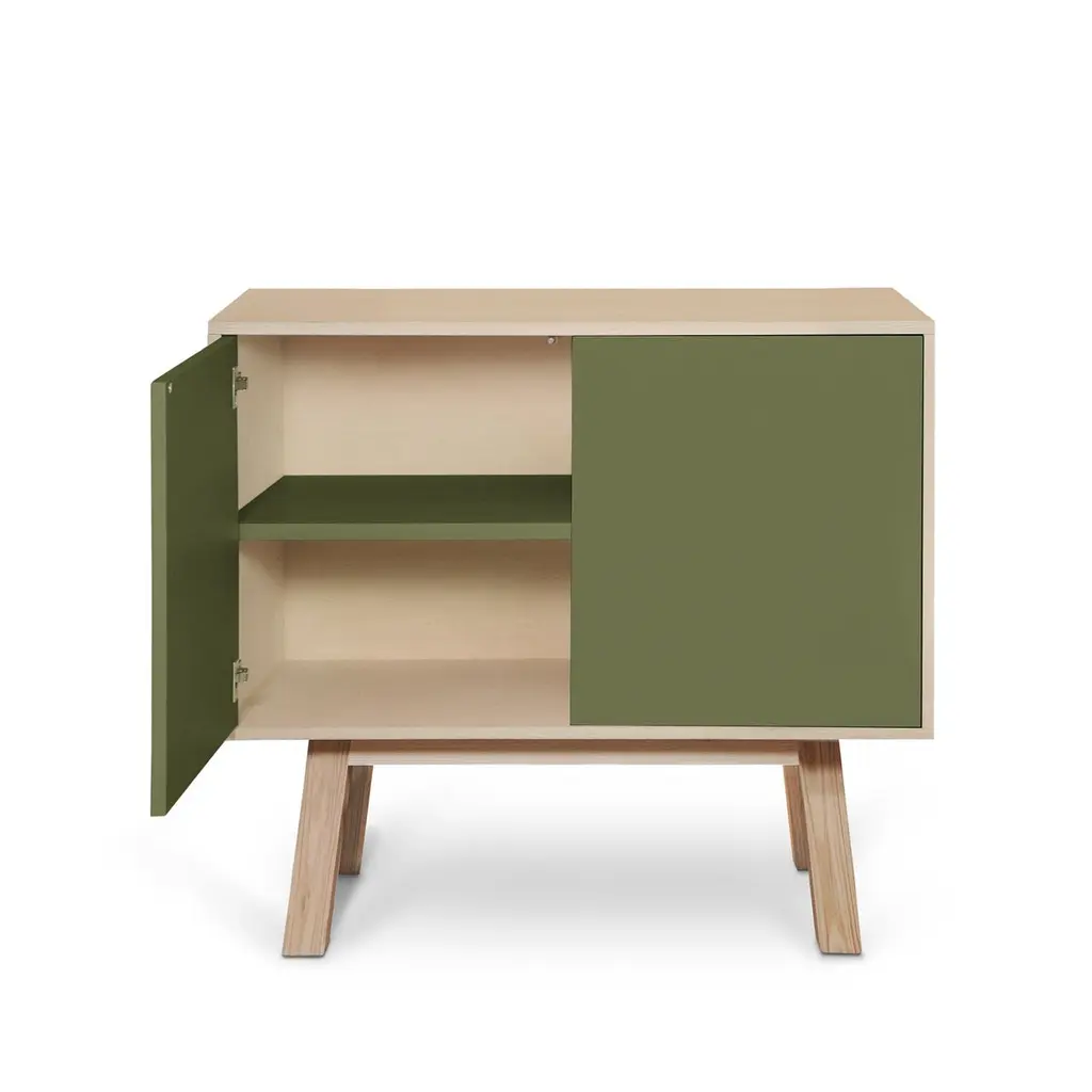 This 2-door cabinet is designed by Eric Gizard, Paris and 100% handcrafted in France.It is made of French solid ash wood, veneer adh and lacquered doors in MDF panels. The 2 doors open with a "push-to-release" pressure. A shelf in solid ash wood is placed behind the 2 doors and adjustable on (supplied) cleats.The shelf colour is identical to the doors' colour.The wood comes from sustainably managed French forests. ÉGÉE collectionThis sideboard is part of the ÉGÉE collection designed by Eric Gizard in Paris. Eric combines the sleek and refined codes of Scandinavian design with natural materials and muted and "trendy" colorful lacquers.MON PETIT MEUBLE FRANCAISprovides you exclusively with 100% Made in France furniture pieces. The manufacture and finishes are of very high-end quality, carried out in French craft workshops, in the west countryside of France: Loire and Bretagne.