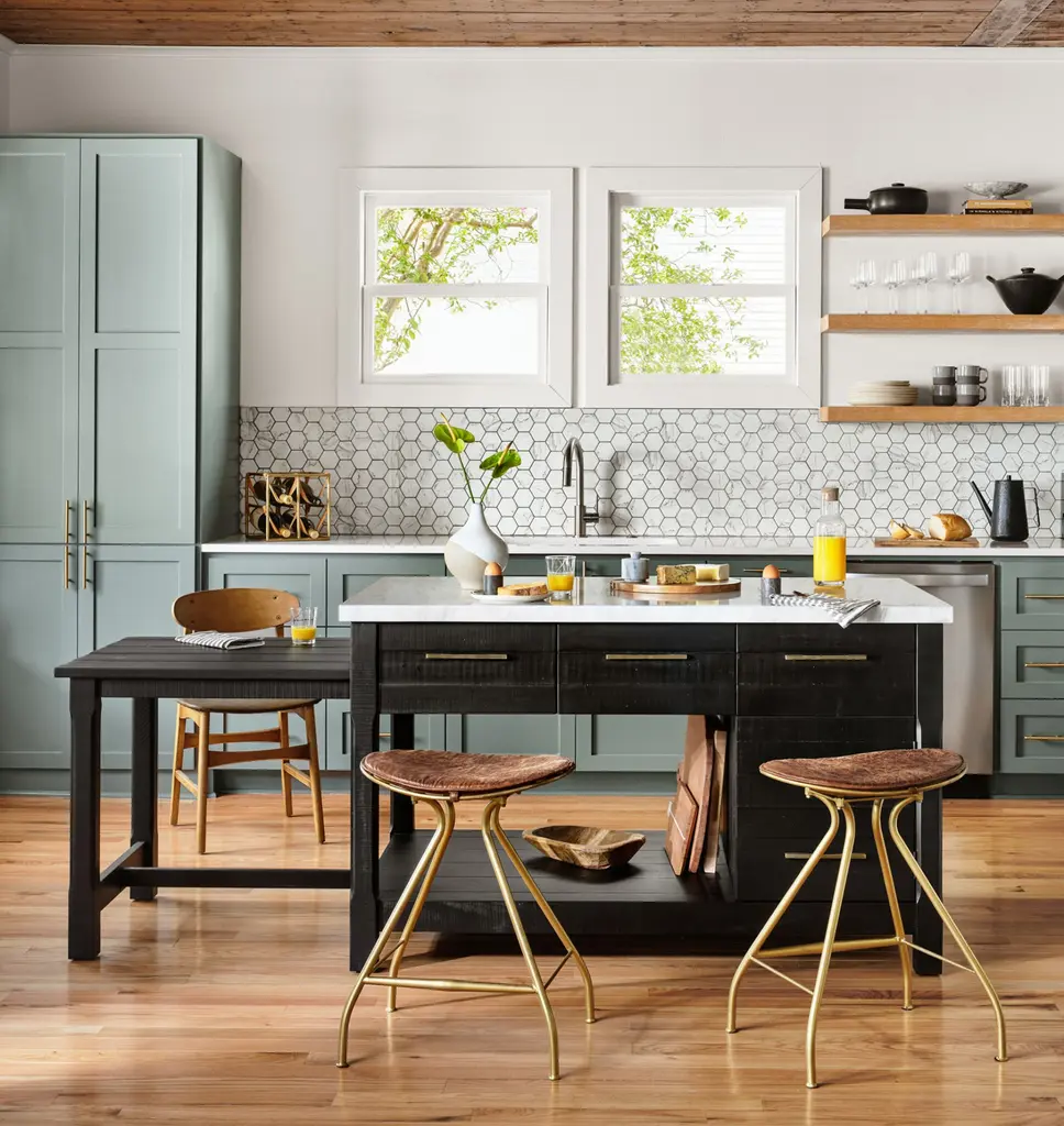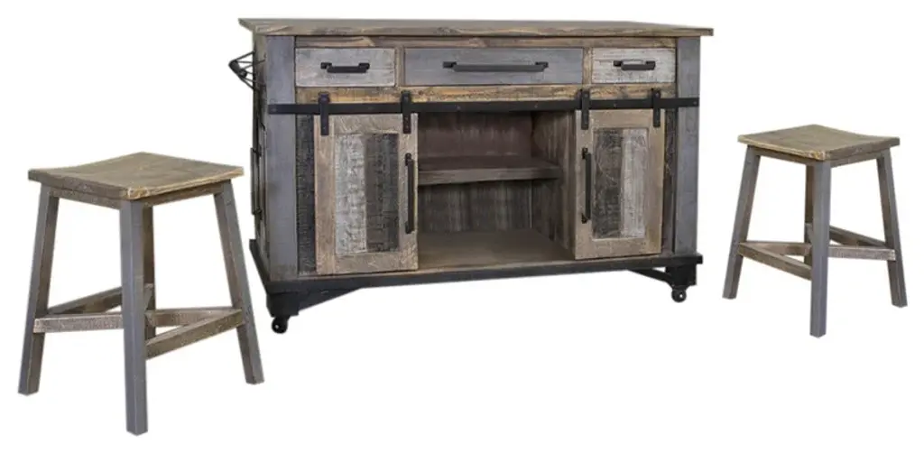 Greenview Loft Rustic Modern Kitchen Island, Kitchen Island With Two Stools